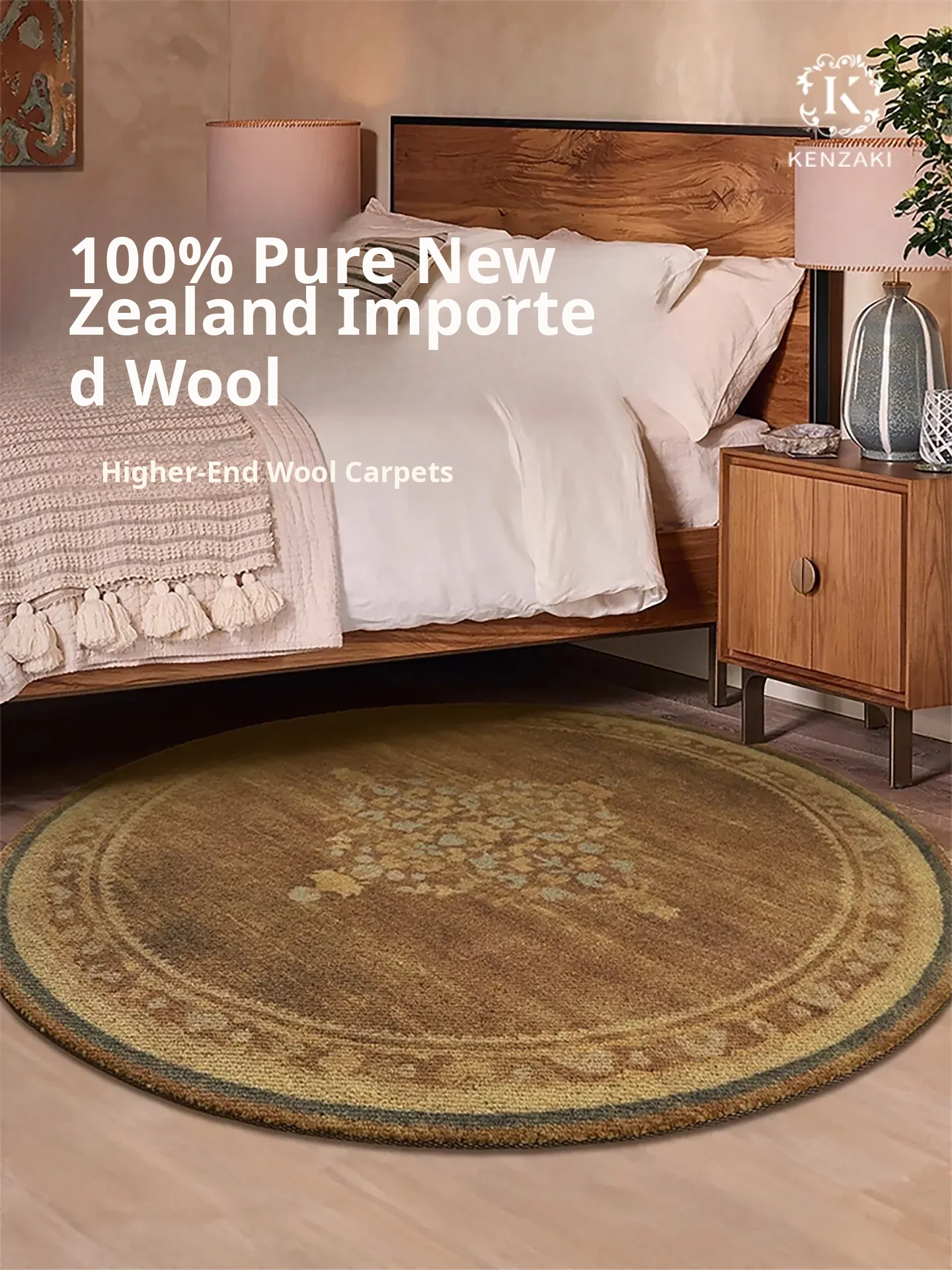 100% Pure New Zealand Wool Round Area Rug for Living Room and Bedroom - New Chinese Style with French Vintage and Retro Aesthetics