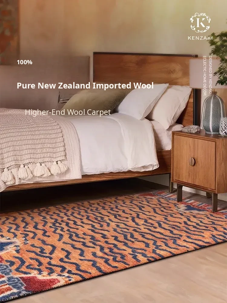 100% Pure New Zealand Wool Carpet - Luxurious Red Tiger Stripe Area Rug for Bedroom and Living Room, Vintage Style with Elegant Touch
