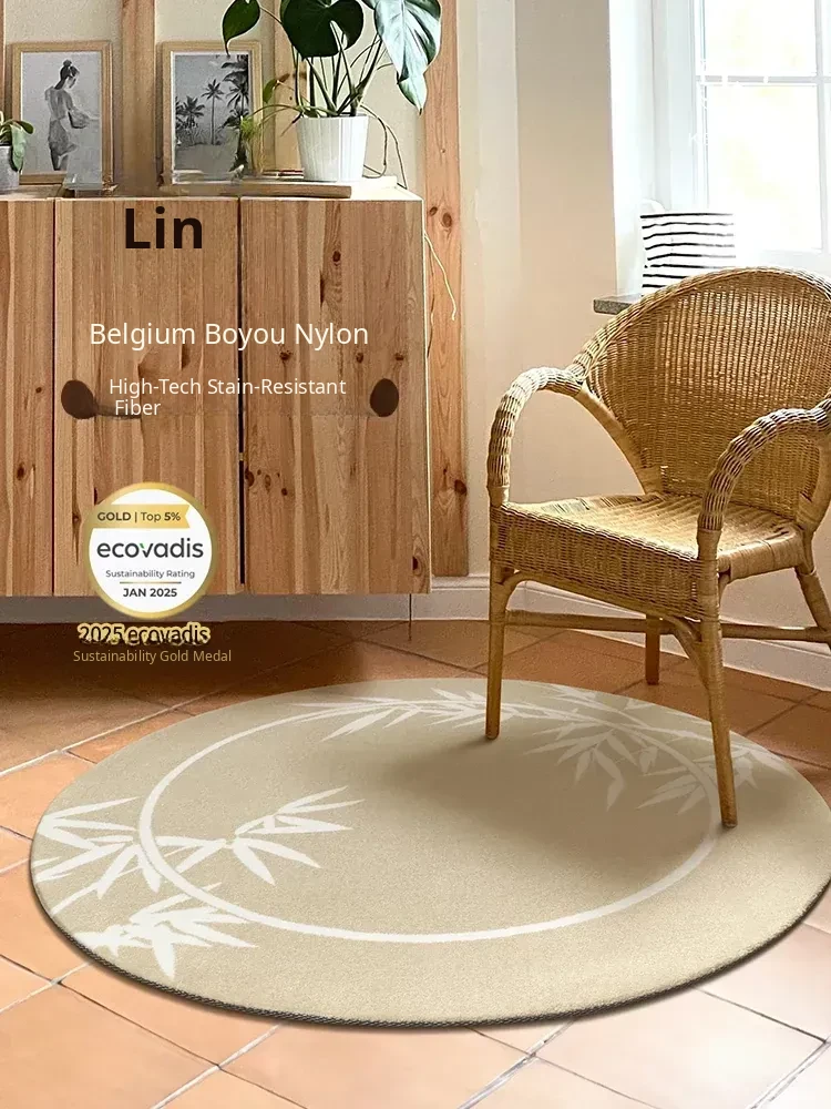 Round Luxury Area Rug for Living Room - Chic Vintage Brown Bamboo Design for Bedroom, Kids' Table & Chair Mat, Perfect for Modern Chinese Decor