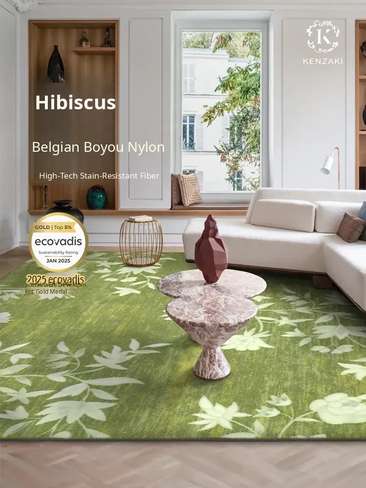 Luxurious Vintage Green Carpet for Living Room and Bedroom - Chic INS Style Bedside Mat in French Antique and Modern Chinese Design