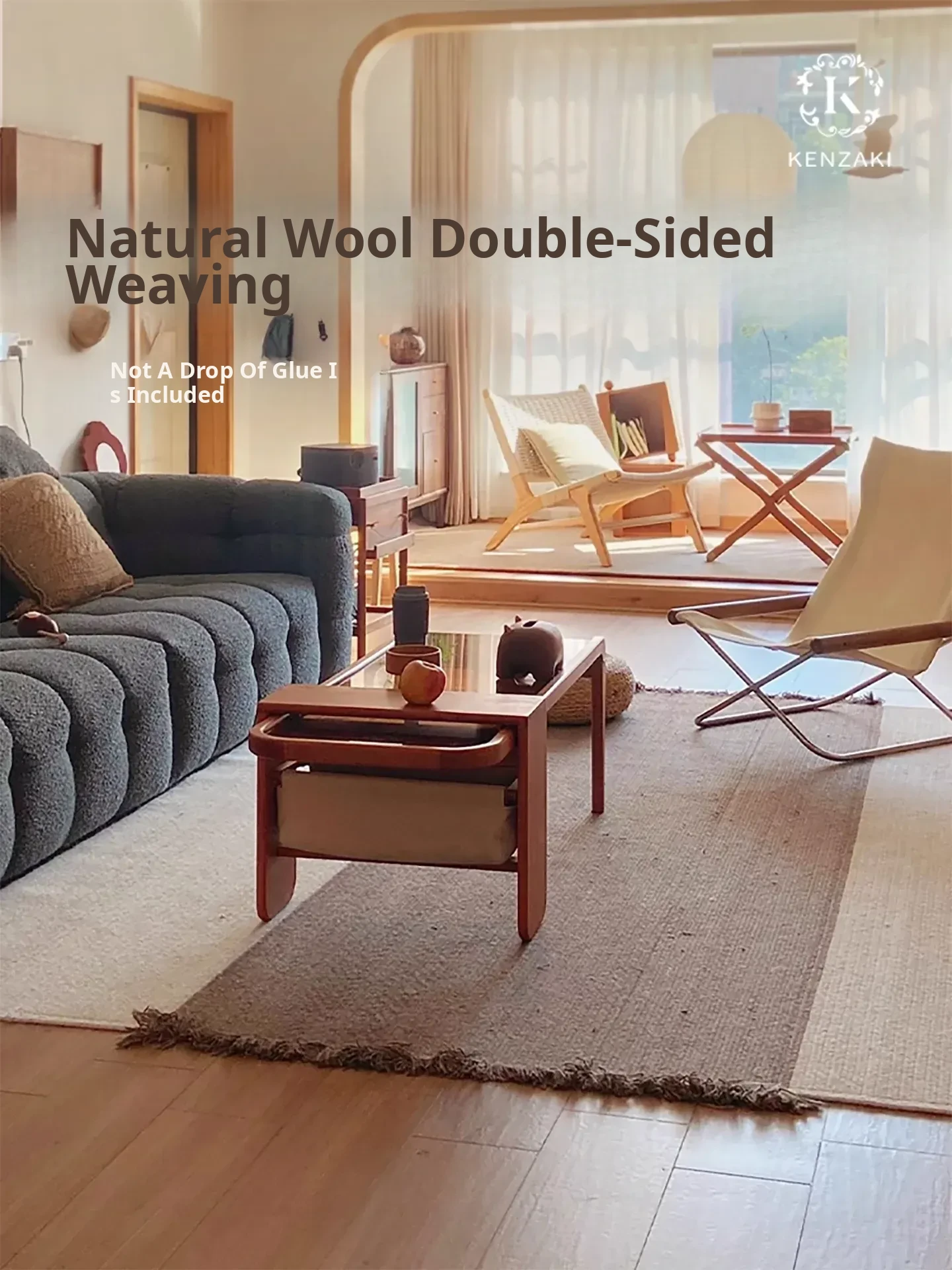 KENZAKI Scandinavian Modern Minimalist Living Room Carpet - Caramel Woven Design for Sofa, Bedroom, and Coffee Table