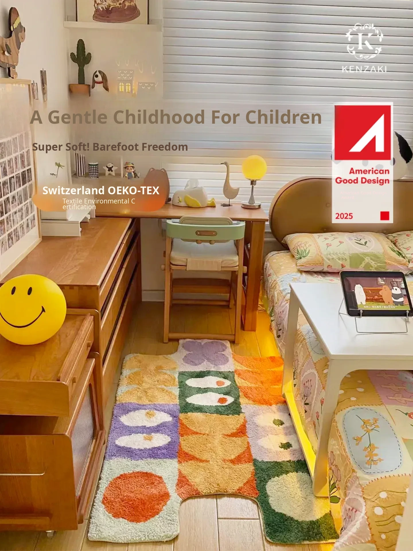 KENZAKI Washable Original Non-Slip Cute Dopamine Color Children's Carpet for Bedroom and Living Room – Perfect for Playtime and Cozy Spaces!