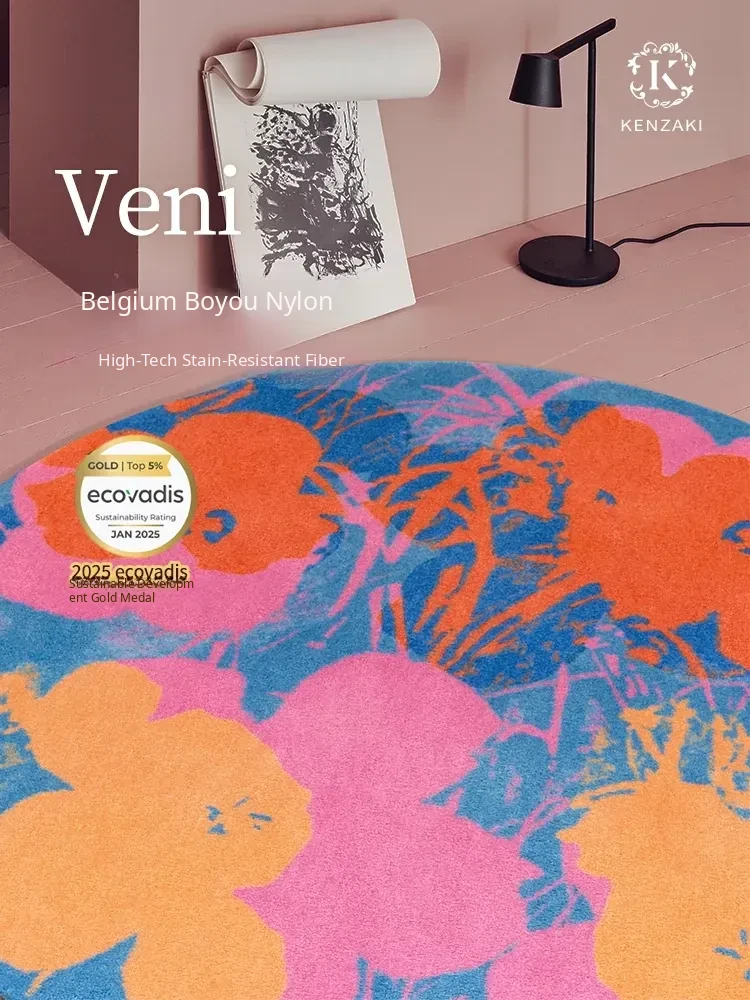 Dopamine Carpet - Luxe French Style Round Area Rug for Living Room and Bedroom, Colorful Floral Mat Perfect for Kids' Rooms and Cozy Spaces