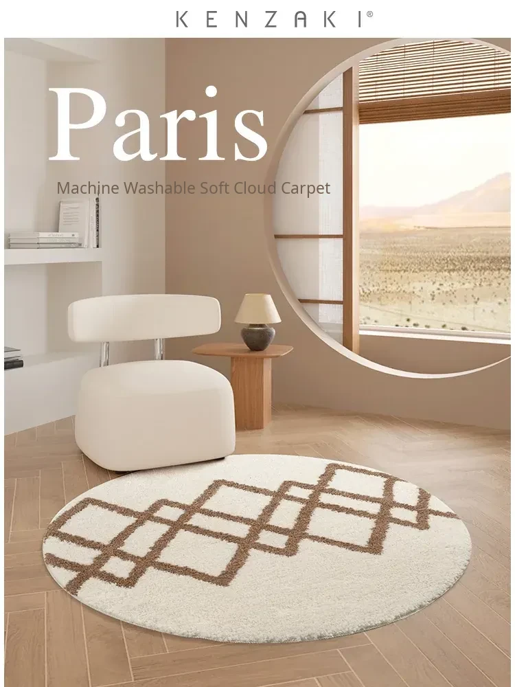 Cozy Round Area Rug for Bedroom - Stylish INS Design Bedside Carpet, Perfect for Kids' Reading Nook and Desk Chair, Non-Slip, Machine Washable - Ideal for Comfort and Safety