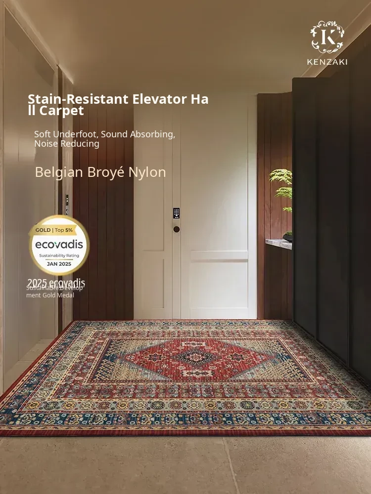 Luxury Vintage French Style Hallway Carpet - Elegant and Stain-Resistant Entrance Mat for Elevators, Living Rooms, and Corridors - Perfect for Wheelchair Accessibility and High-End Décor