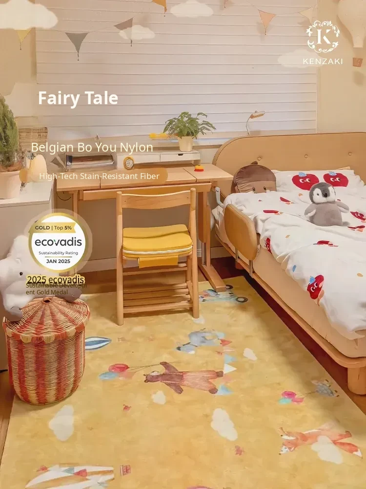 Luxurious French-Inspired Yellow Children's Bedroom Carpet - Cozy Bedside Mat and Living Room Area Rug for Stylish Room Decor and Window Seat Comfort