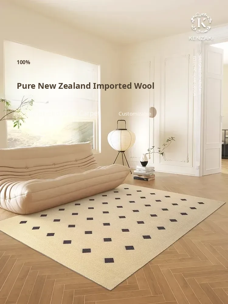 100% Pure New Zealand Wool Carpet - Luxurious Lightweight Bedroom & Living Room Rug, French INS Creamy Style, Thick and Cozy for Ultimate Comfort