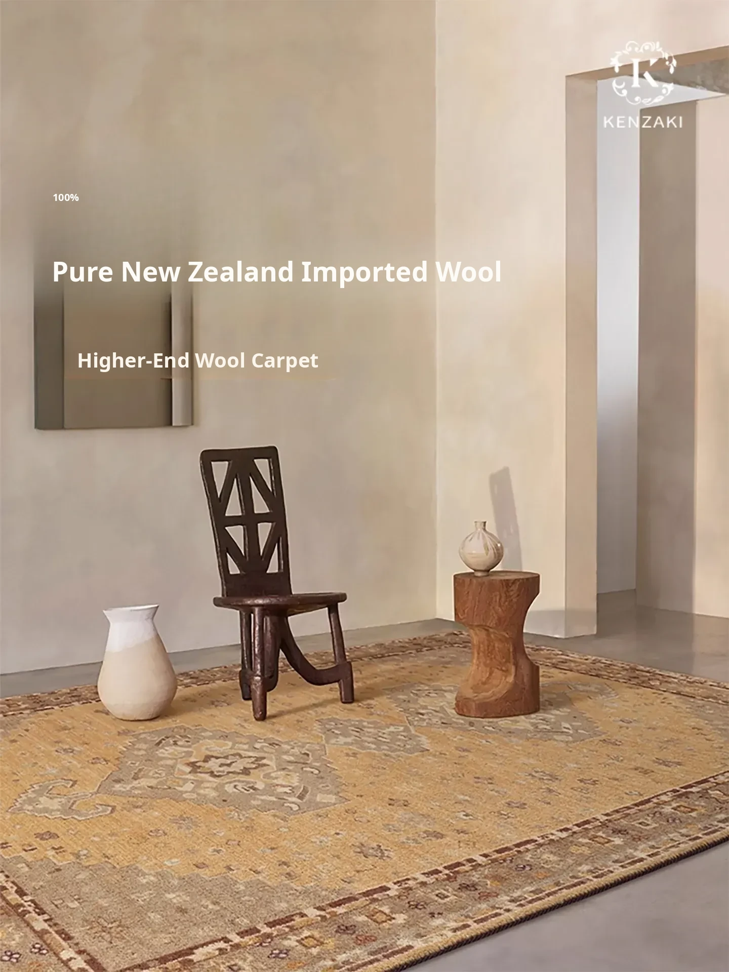 100% Pure New Zealand Wool Carpet: Luxurious Vintage-Style Area Rug for Living Room and Bedroom, Perfect for Sofas and Bedside Décor