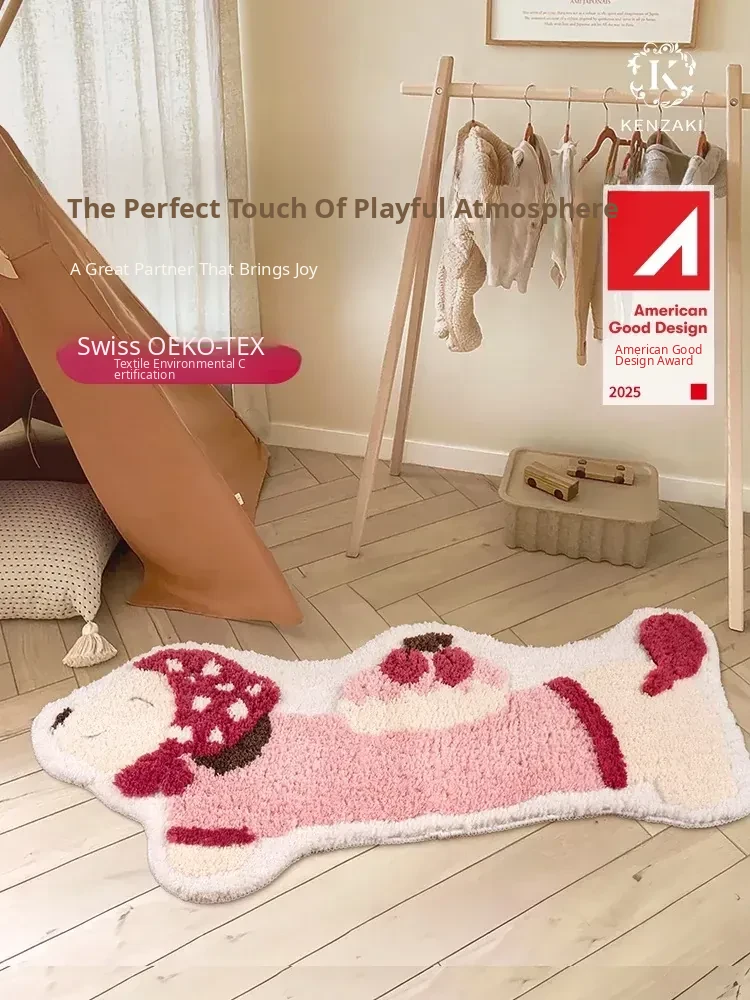 Cute Pink Dog Shaped Area Rug for Kids' Bedroom - Non-Slip, Ins Style, Machine Washable, Perfect for Bedside Decor!