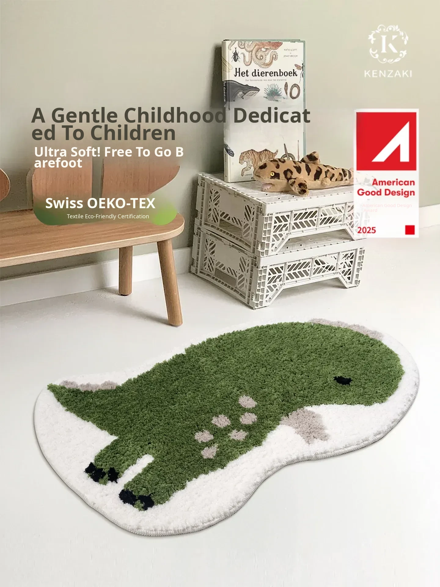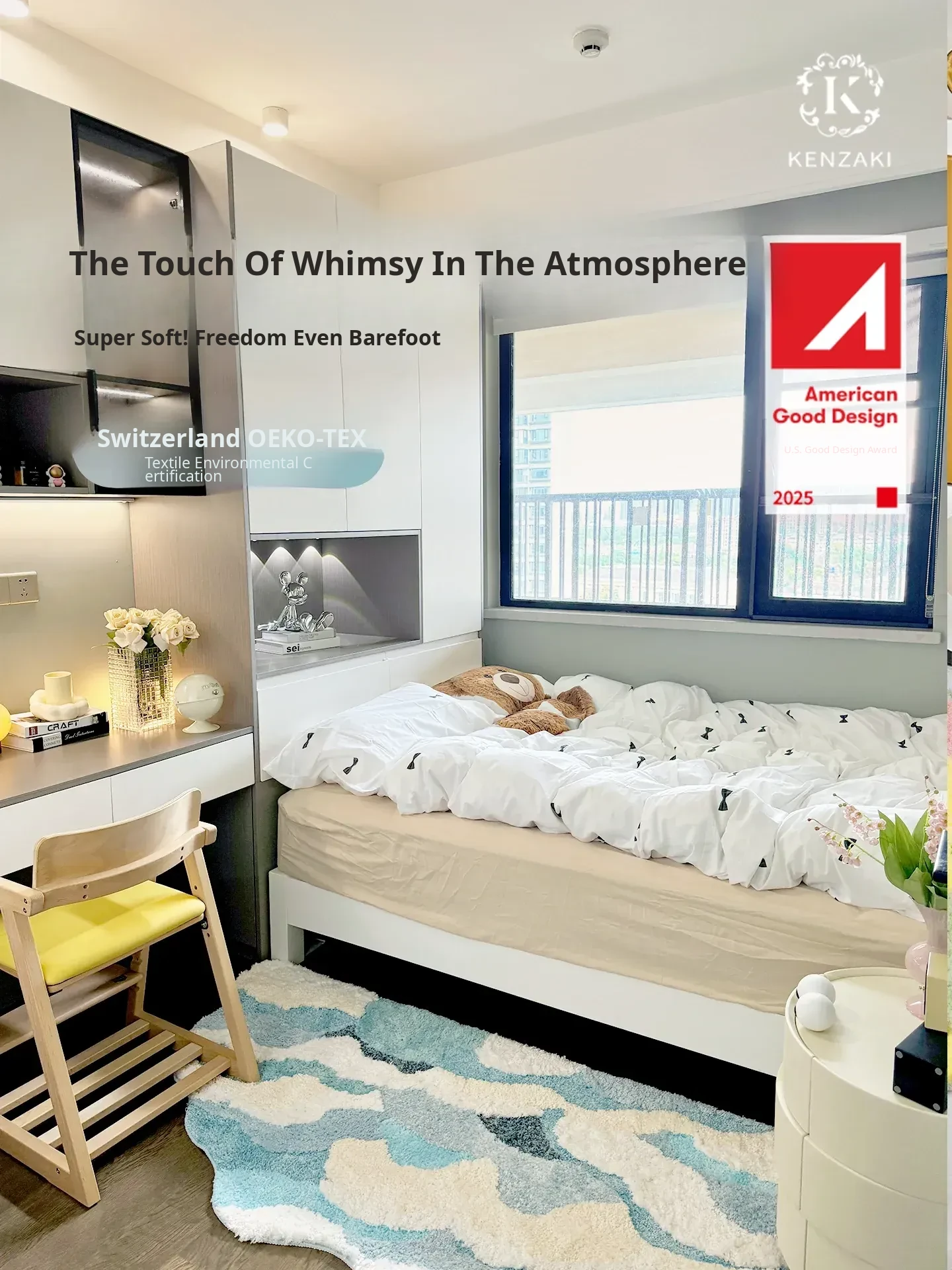 KENZAKI Washable Soundproof Non-Slip Area Rug for Kids - Perfect for Bedrooms and Living Rooms, Ideal for Playtime and Safety!