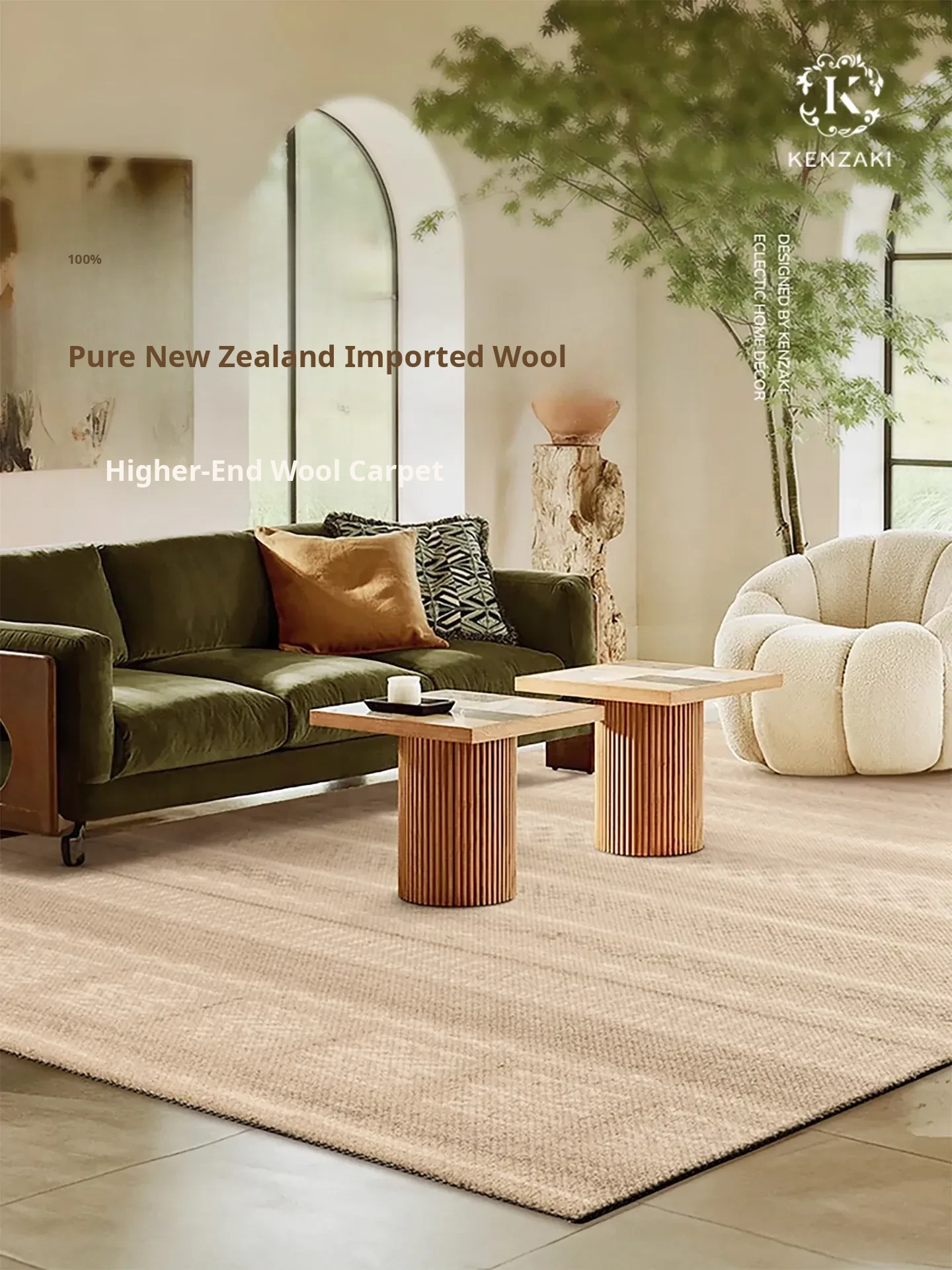 KENZAKI 100% Pure New Zealand Wool Area Rug – Luxurious Soft Carpet for Living Room, Bedroom, and Sofa – Elevate Your Home Décor with Premium Quality