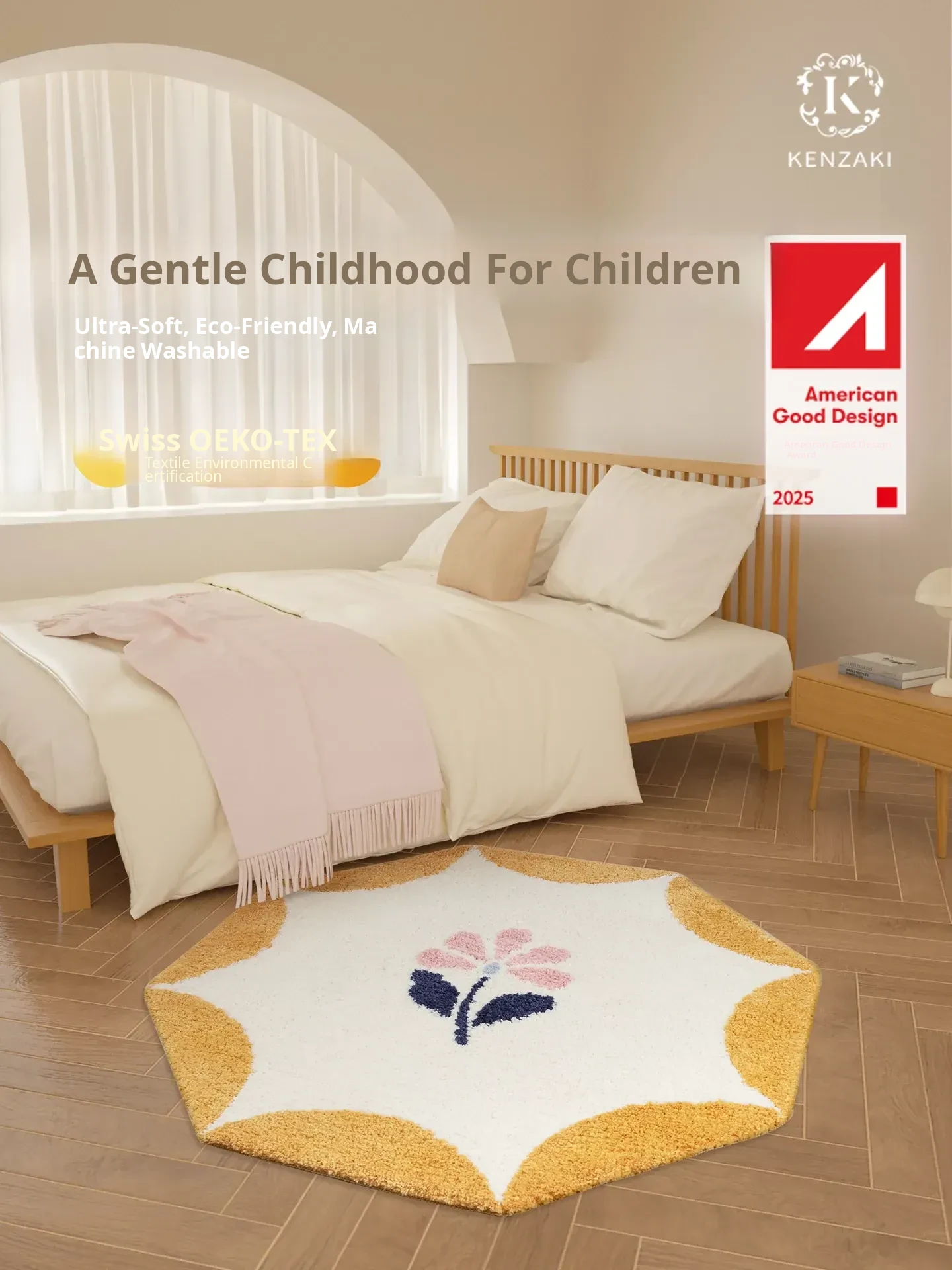 KENZAKI Washable Bedside Rug - Noise-Reducing, Non-Slip Area Carpet for Bedrooms and Kids' Rooms, Perfect for Bathrooms and Unique Living Spaces