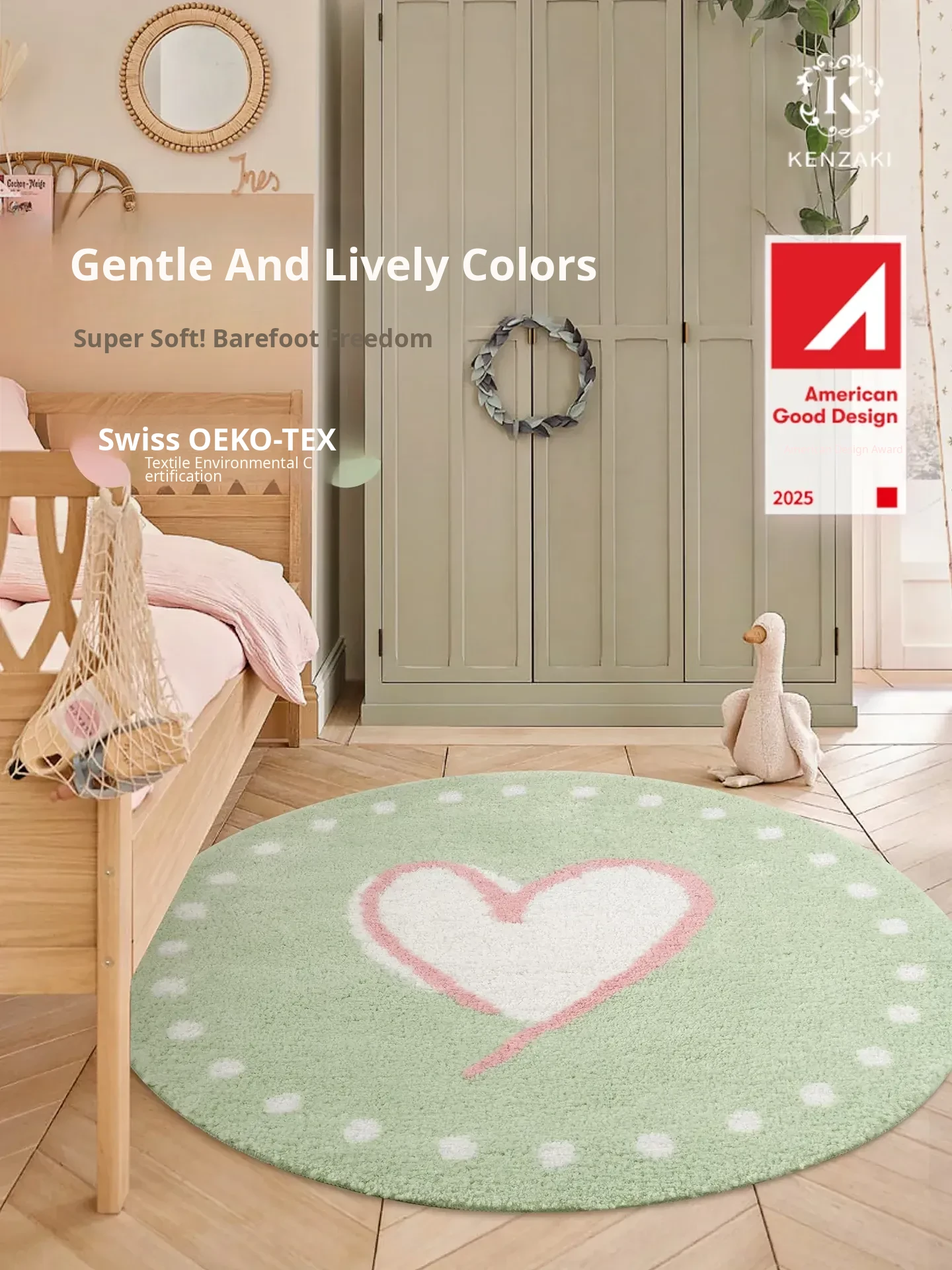 Green Heart-Shaped Non-Slip Area Rug for Kids - Perfect Bedroom and Living Room Carpet for Boys and Girls, Machine Washable, Ideal for Master Bedrooms and Play Areas