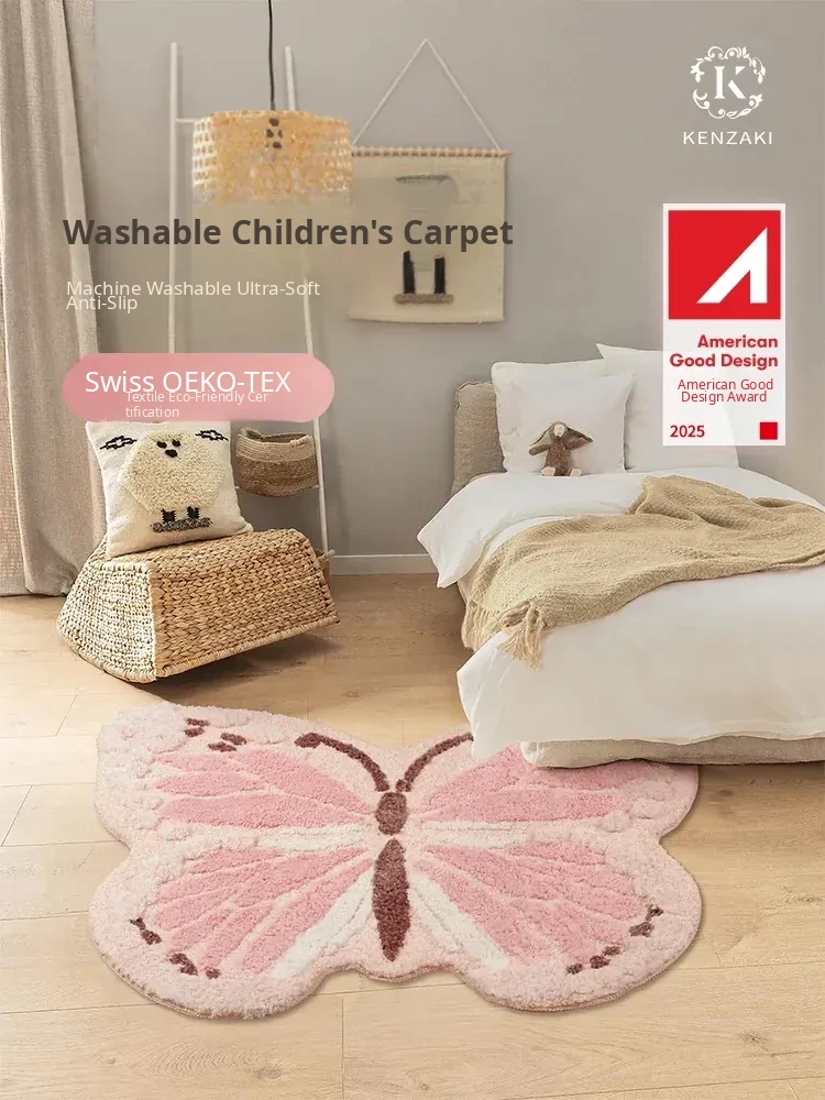Butterfly Area Rug for Girls' Bedroom - Pink Ins Style Bedside Mat, Machine Washable, Unique Shape, Perfect for Cozy Kids' Rooms