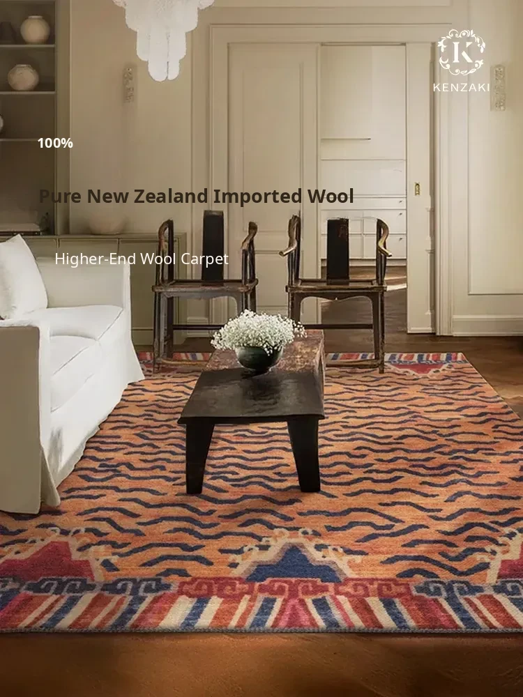 100% Pure New Zealand Wool Carpet - Luxurious Vintage French Style Red Tiger Stripe Area Rug for Living Room and Bedroom