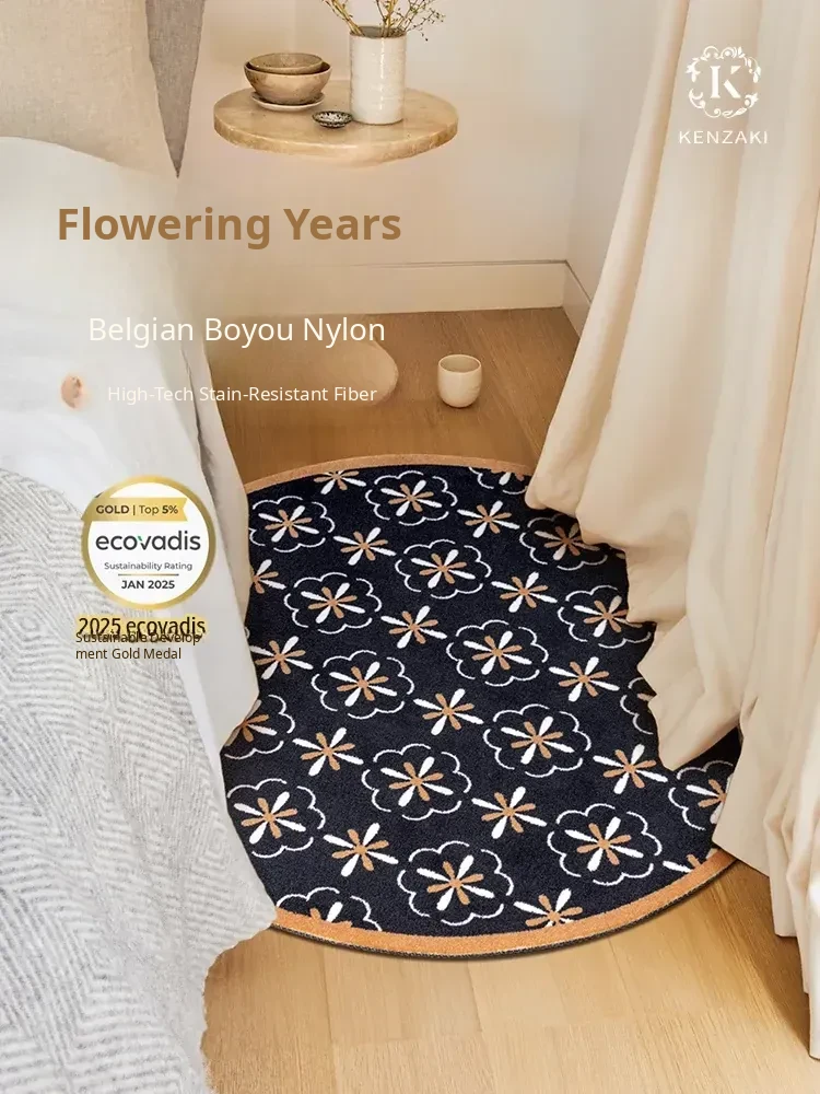 New Vintage-Inspired Round Rug for Bedroom and Living Room - Luxurious French Design Carpet for Kids, Perfect for Dressing Tables and Walk-in Closets
