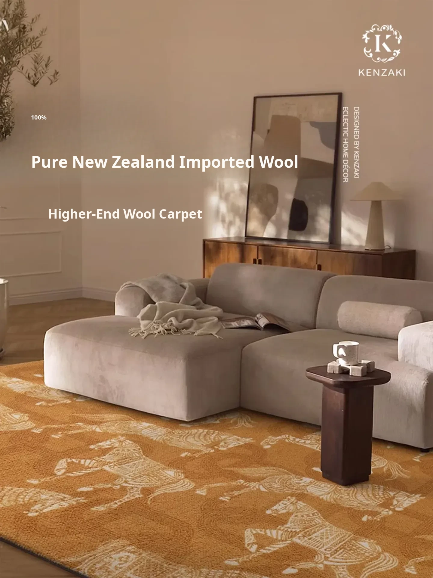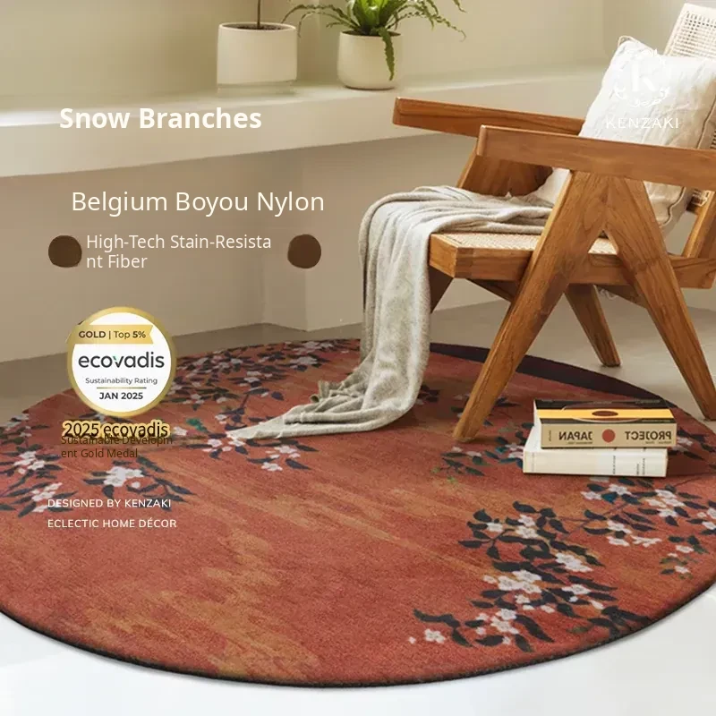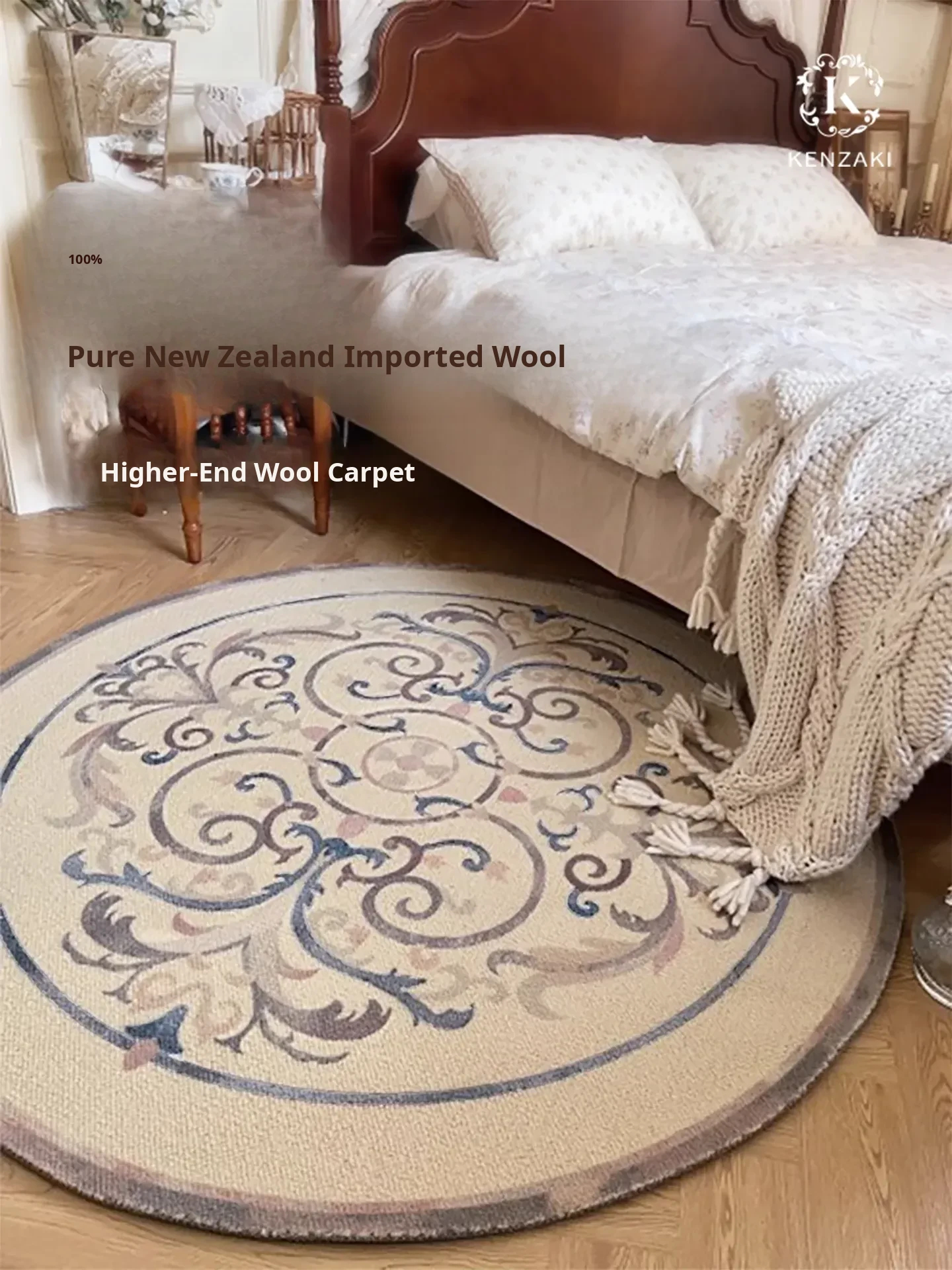 100% Pure New Zealand Wool Round Area Rug for Living Room and Bedroom - New Chinese Style with French Vintage and Retro Aesthetics