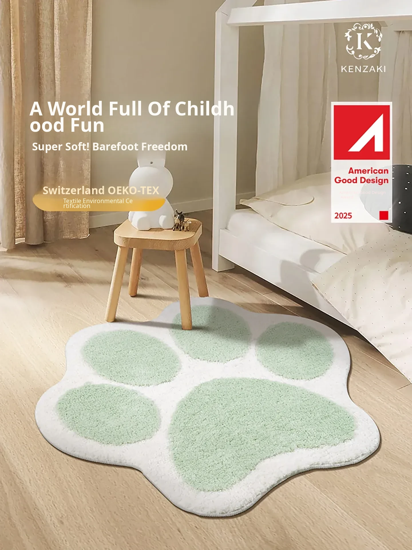 Cute Cat Paw Shaped Green Area Rug for Kids' Bedroom - Non-Slip, Machine Washable, Perfect for Reading Nook or Living Room Décor.