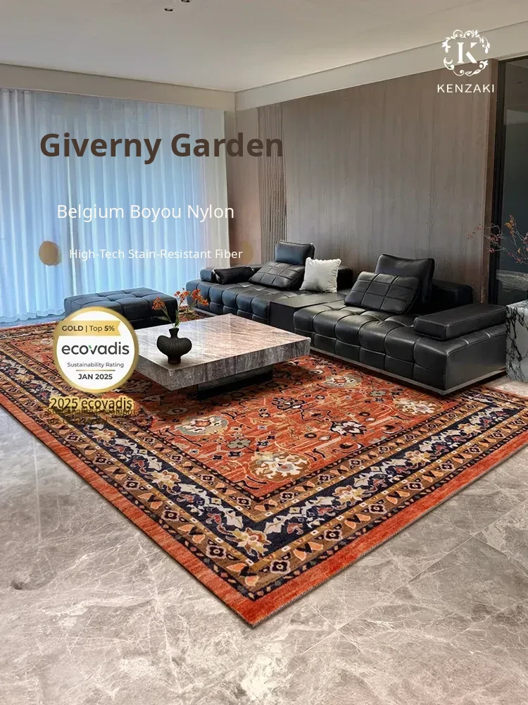 Luxury Vintage Red Area Rug for Living Room and Bedroom – Elegant Soundproof Carpet for Sofa and Bedside, French Retro Design, Perfect for Sophisticated Home Décor