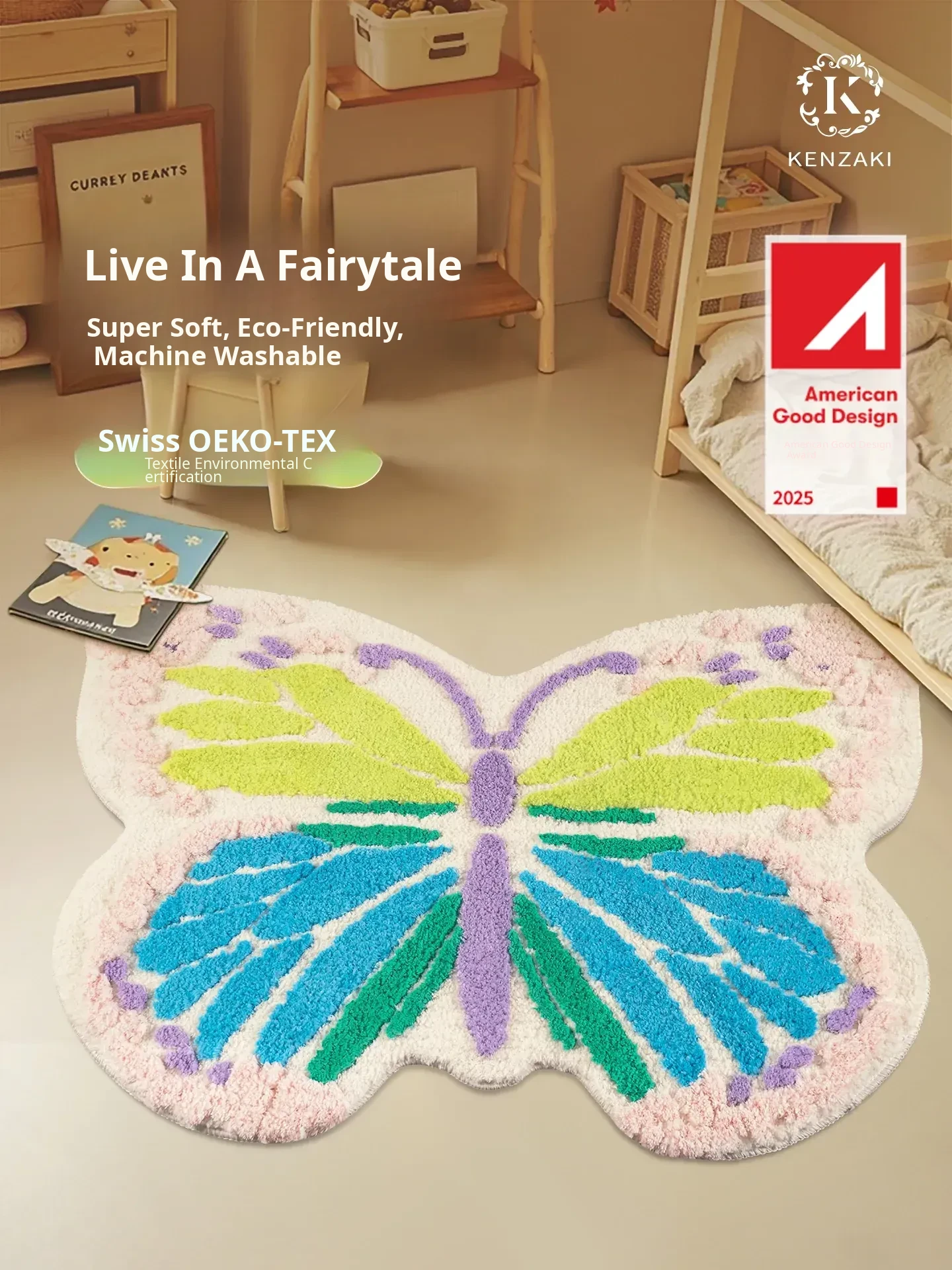 Blue Butterfly Shaped Kids' Area Rug - Perfect for Boys & Girls! Ideal for Bedroom, Living Room, and Play Areas. Machine Washable and Stylish, Enhance Your Child's Space with This Trendy INS Design!