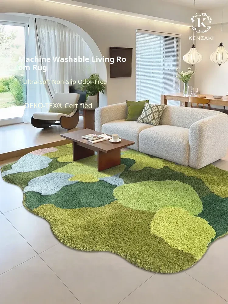 New Luxury Green Moss-Shaped Area Rug for Living Room - Soft and Stylish Carpet for Sofa & Coffee Table, Perfect for Bedroom or Bedside, Machine Washable