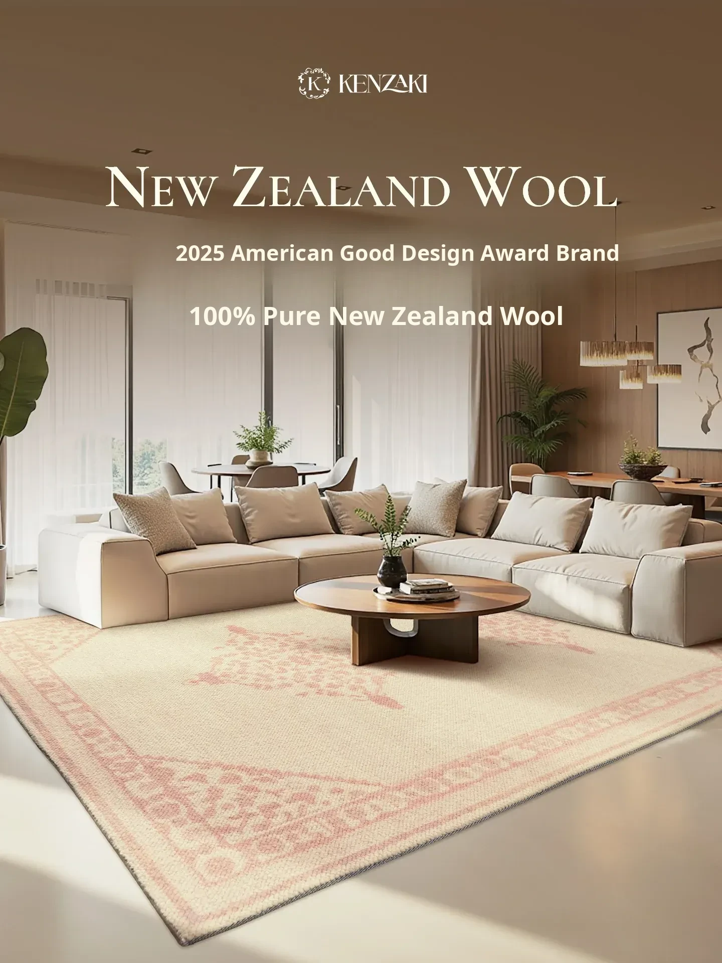 Premium 100% New Zealand Wool Carpet for Living Room - Luxurious French Vintage Design in Thick, Washable Pink - Perfect for a Chic Home Makeover!