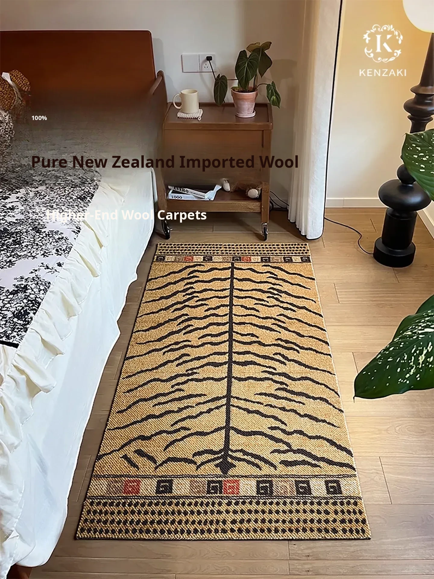 100% Pure New Zealand Wool Area Rug - Luxurious Vintage French & American Style with Striped Tiger Pattern for Living Room & Bedroom Decor