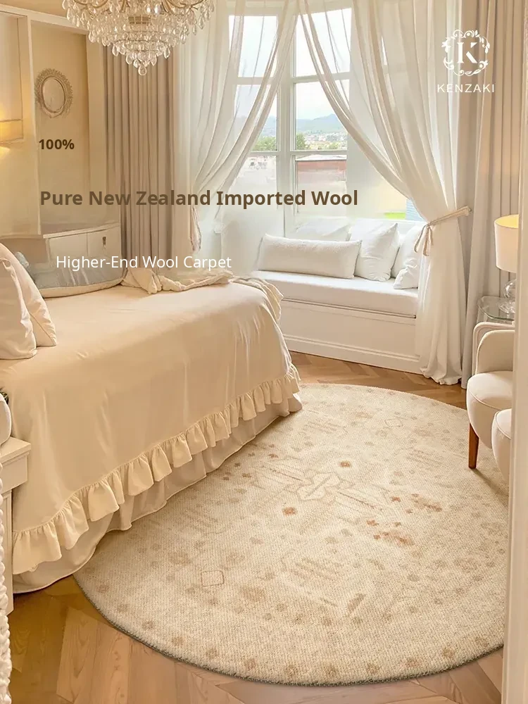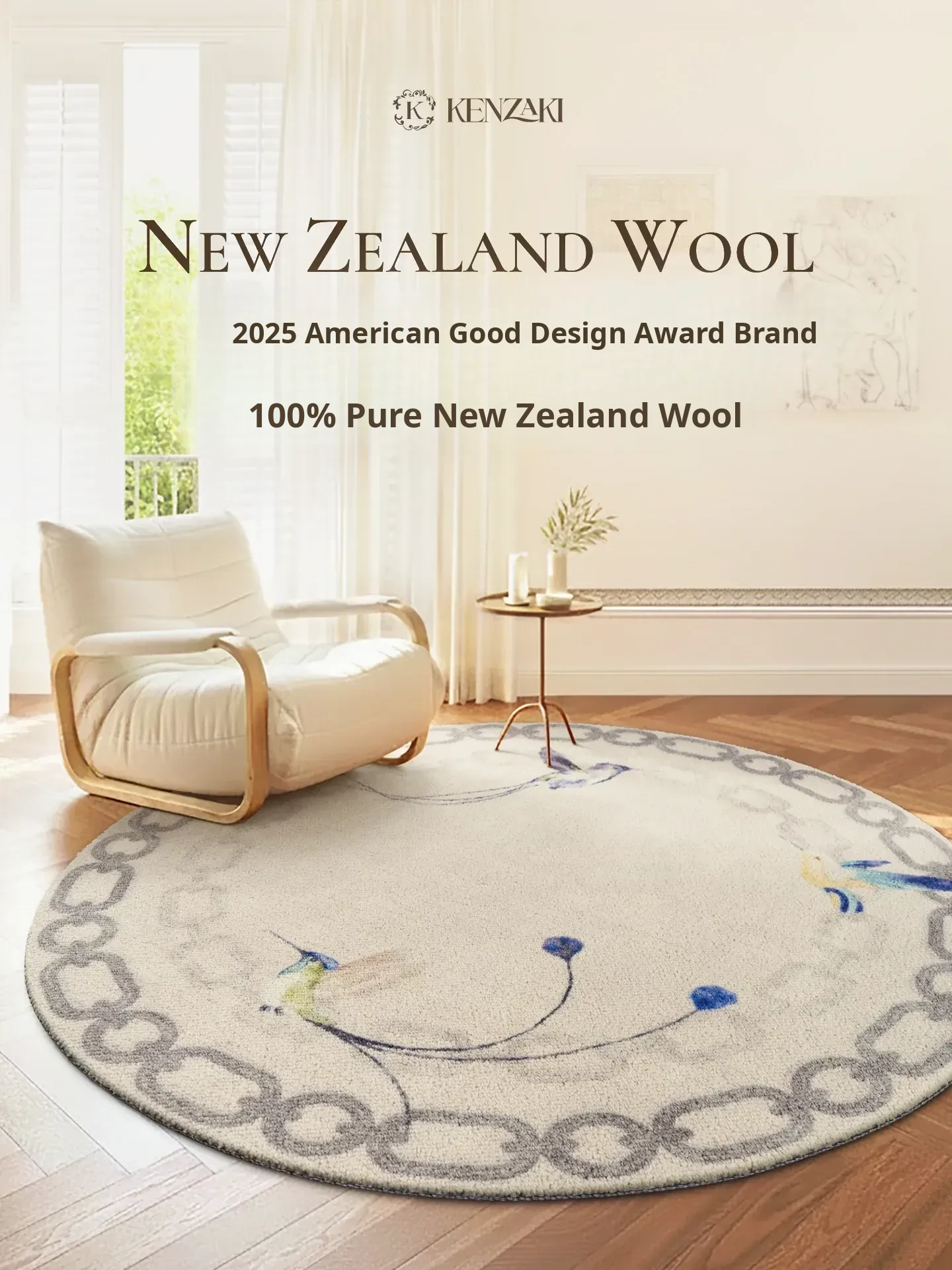 100% Pure New Zealand Wool Round Area Rug for Living Room and Bedroom - New Chinese Style with French Vintage and Retro Aesthetics