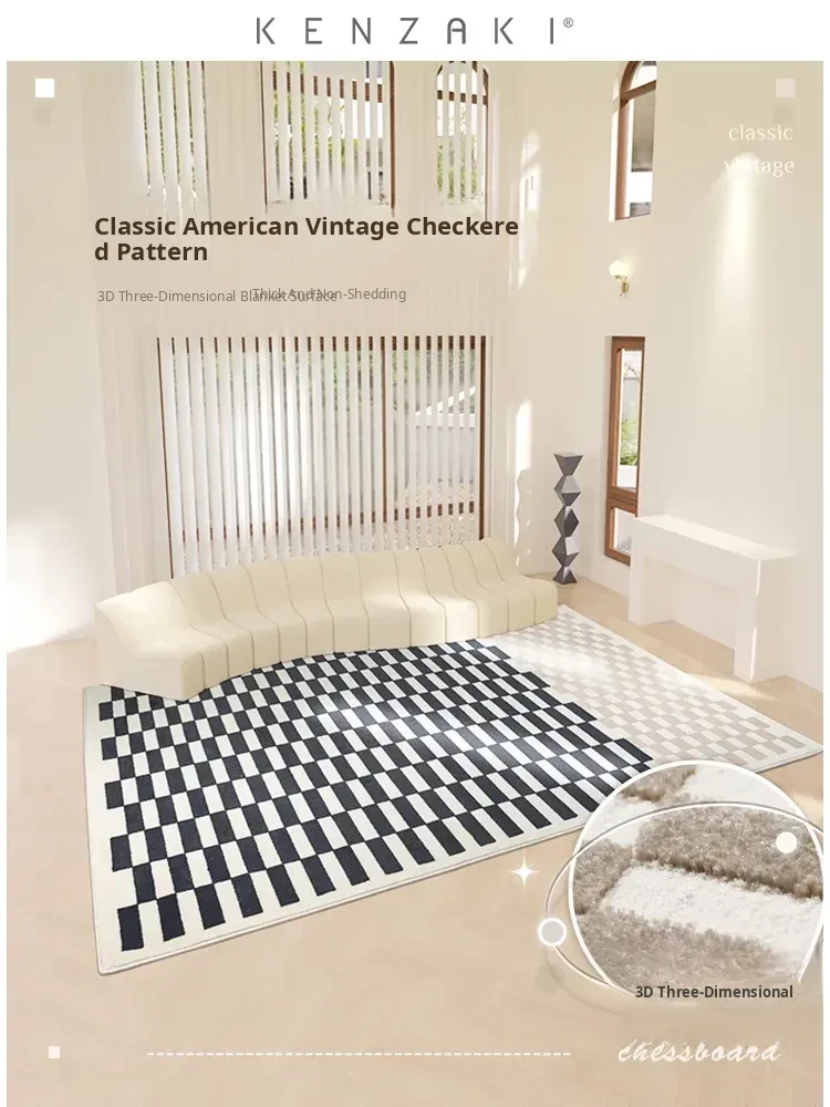 【Clearance Sale】Luxurious French Checkered Area Rug for Living Room – Vintage Thick Carpet for Bedroom – Elevate Your Home Décor with Style and Comfort!