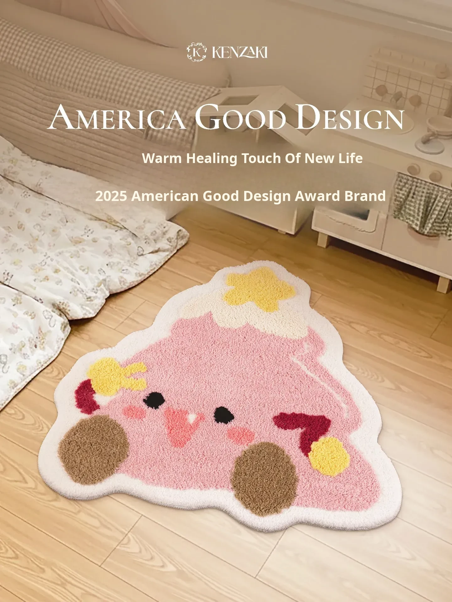 Dopamine Room Area Rug - Irregular Shape Carpet for Girls' Bedroom, Non-Slip Runner Mat for Kids, Machine Washable Living Room Floor Mat
