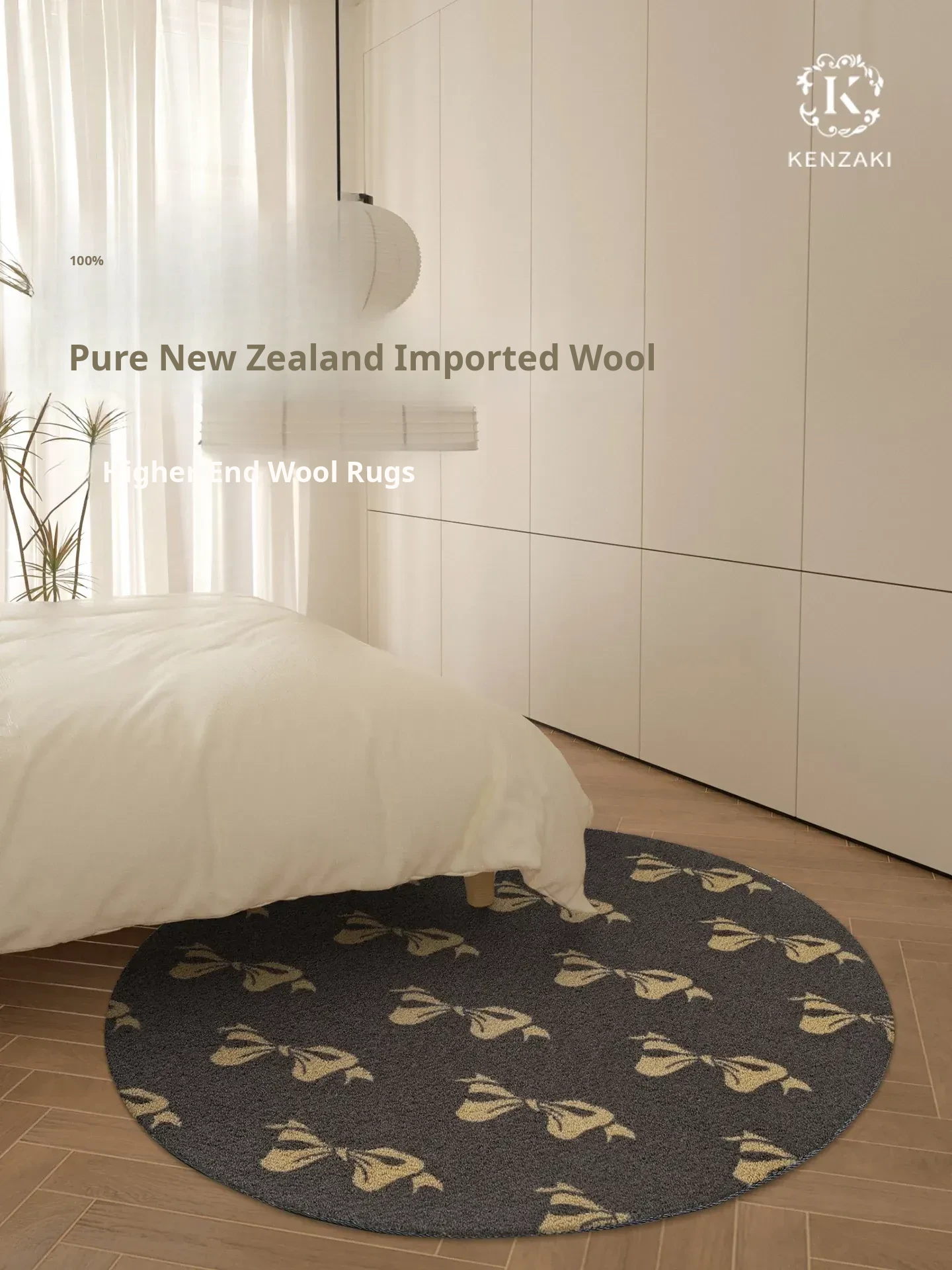 KENZAKI Vintage New Zealand Wool Round Carpet - Retro French Style for Bedroom, Living Room, and Coffee Table