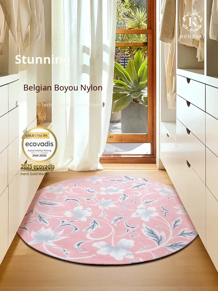 Luxurious Round Pink Floral Area Rug for Living Room and Kids' Bedroom - Chic, High-End Design Perfect for Girls' Spaces and Cozy Bedside Decor