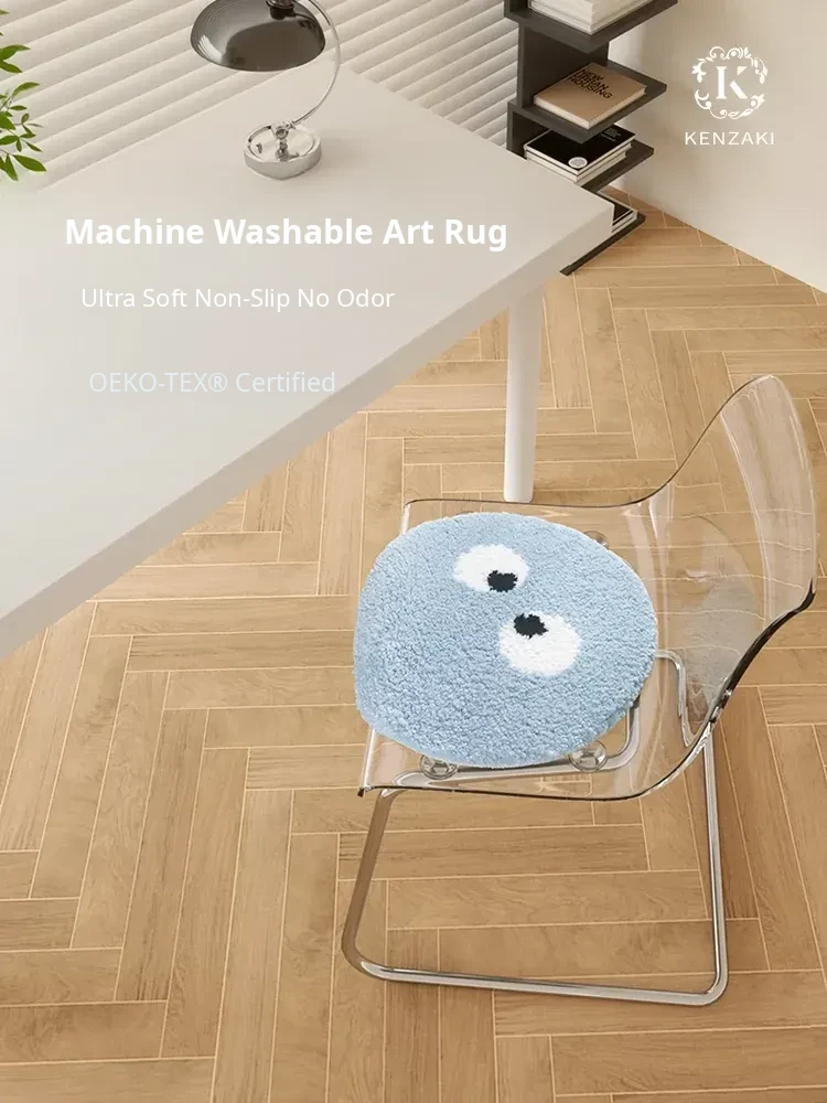 KENZAKI Ultra-Soft Washable Floor Mat - Cute Expression Plush Seat Cushion, Retro Checkered Non-Slip Area Rug - Perfect for Cozy Home Decor!