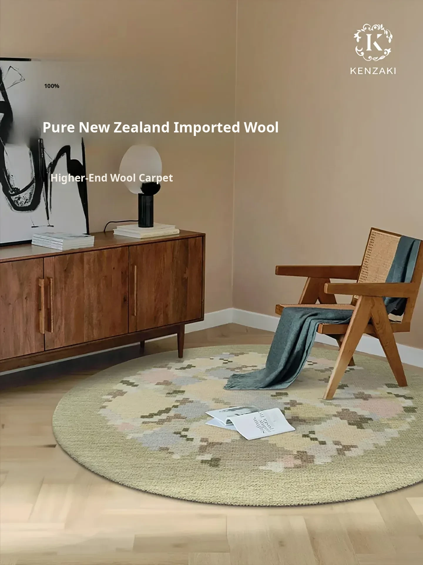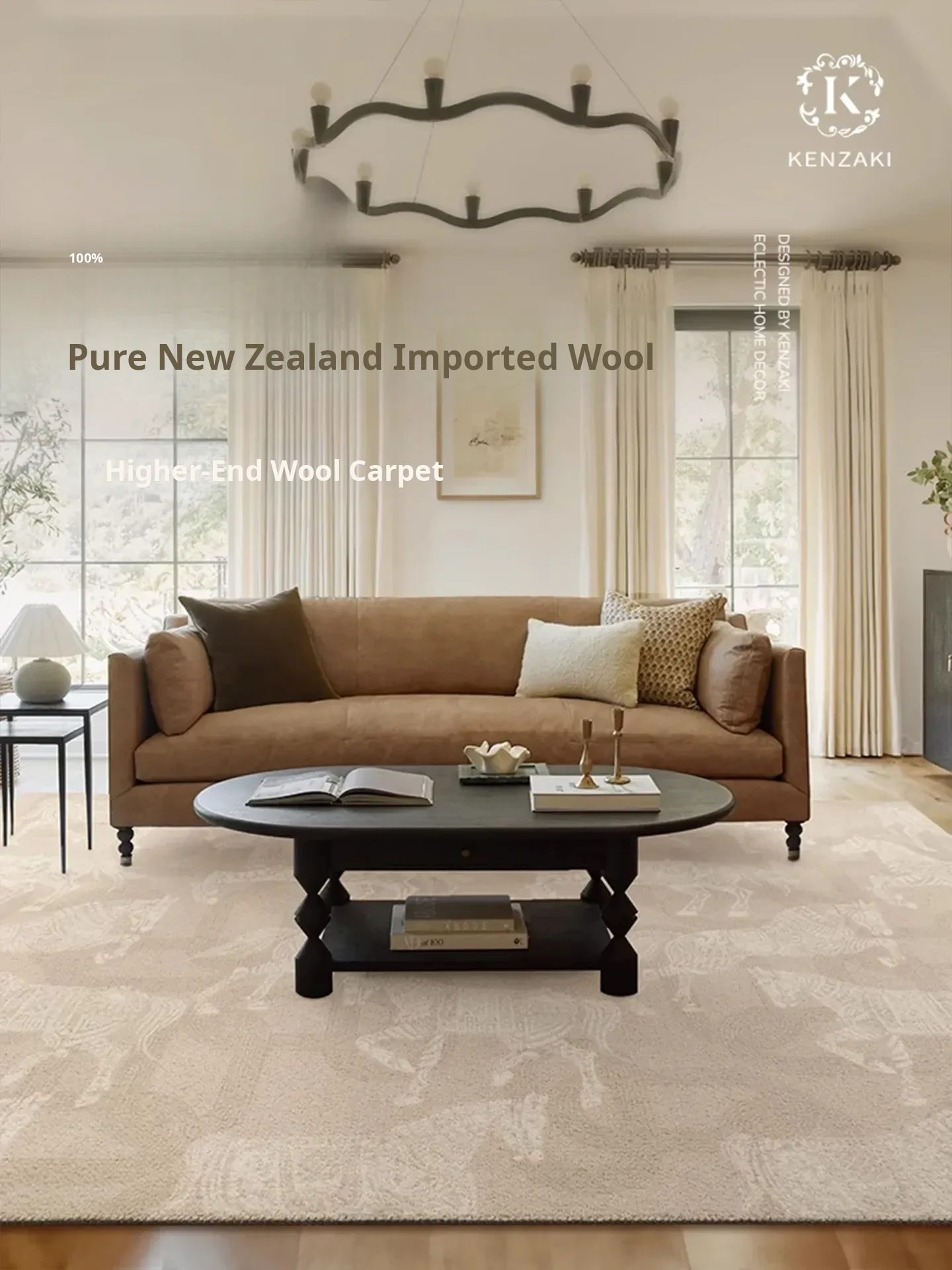 100% Pure New Zealand Wool Rug - Luxurious French-style Carpet for Living Room & Vintage Bedroom - Elegant & Cozy Bedside Mat
