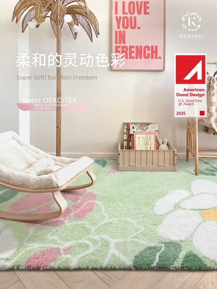 Kids' Room Carpet - Non-Slip Green Plant Area Rug for Girls' Bedroom, Perfect for Bedside and Vanity, Machine Washable and Stylish Decor!