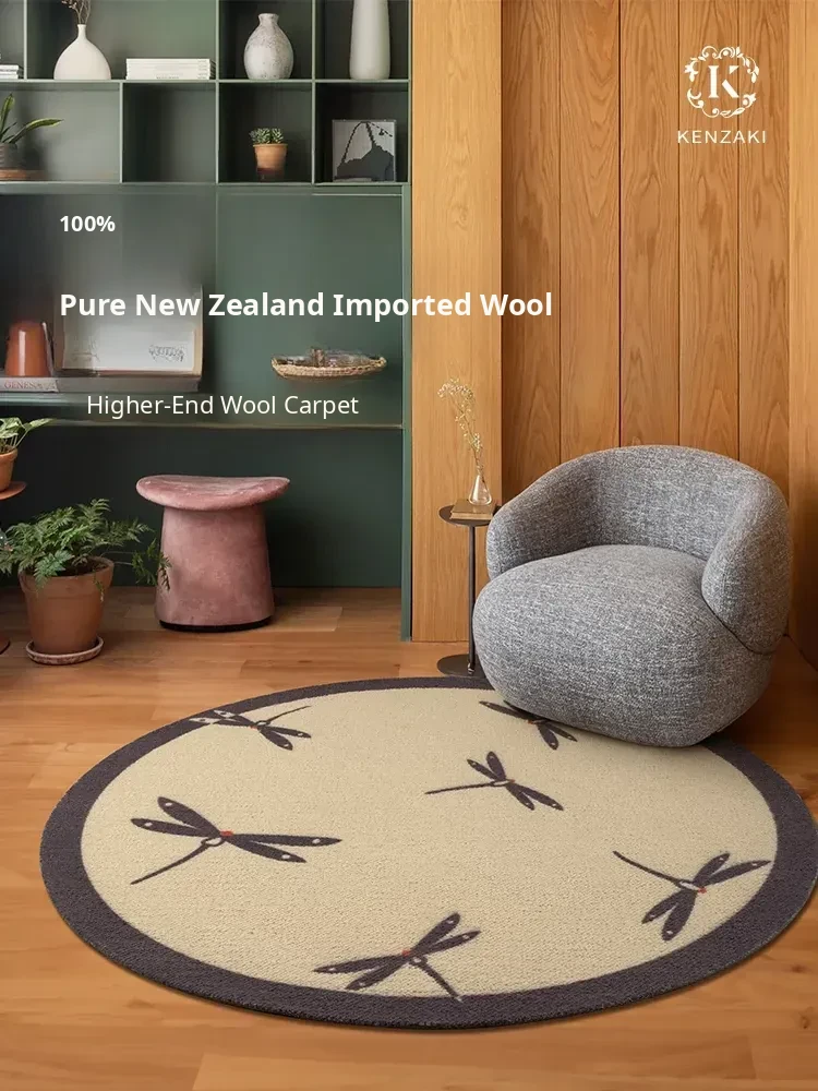 100% Pure New Zealand Wool Round Carpet - Luxurious French Vintage Design for Living Room, Perfect for Bedroom or Sofa Side, Featuring Elegant Bird Motif