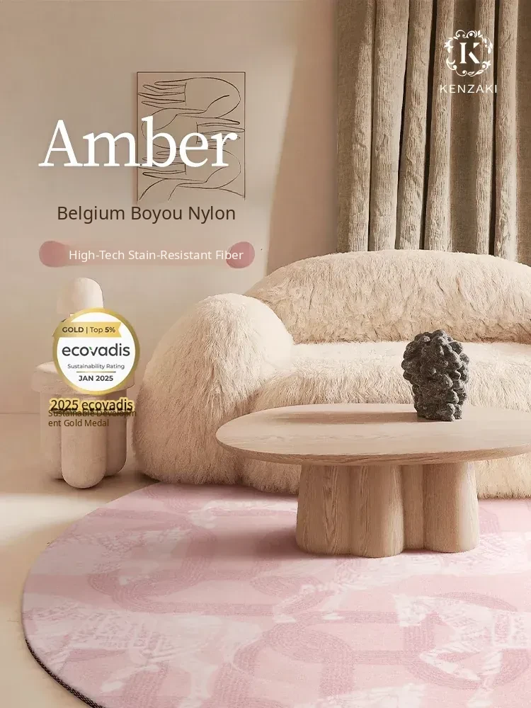 Luxury Pink Round Carpet for Living Room - New Chic Design for Girls' Bedroom, Ideal for Makeup Chairs and Kids' Spaces, French Style Area Rug