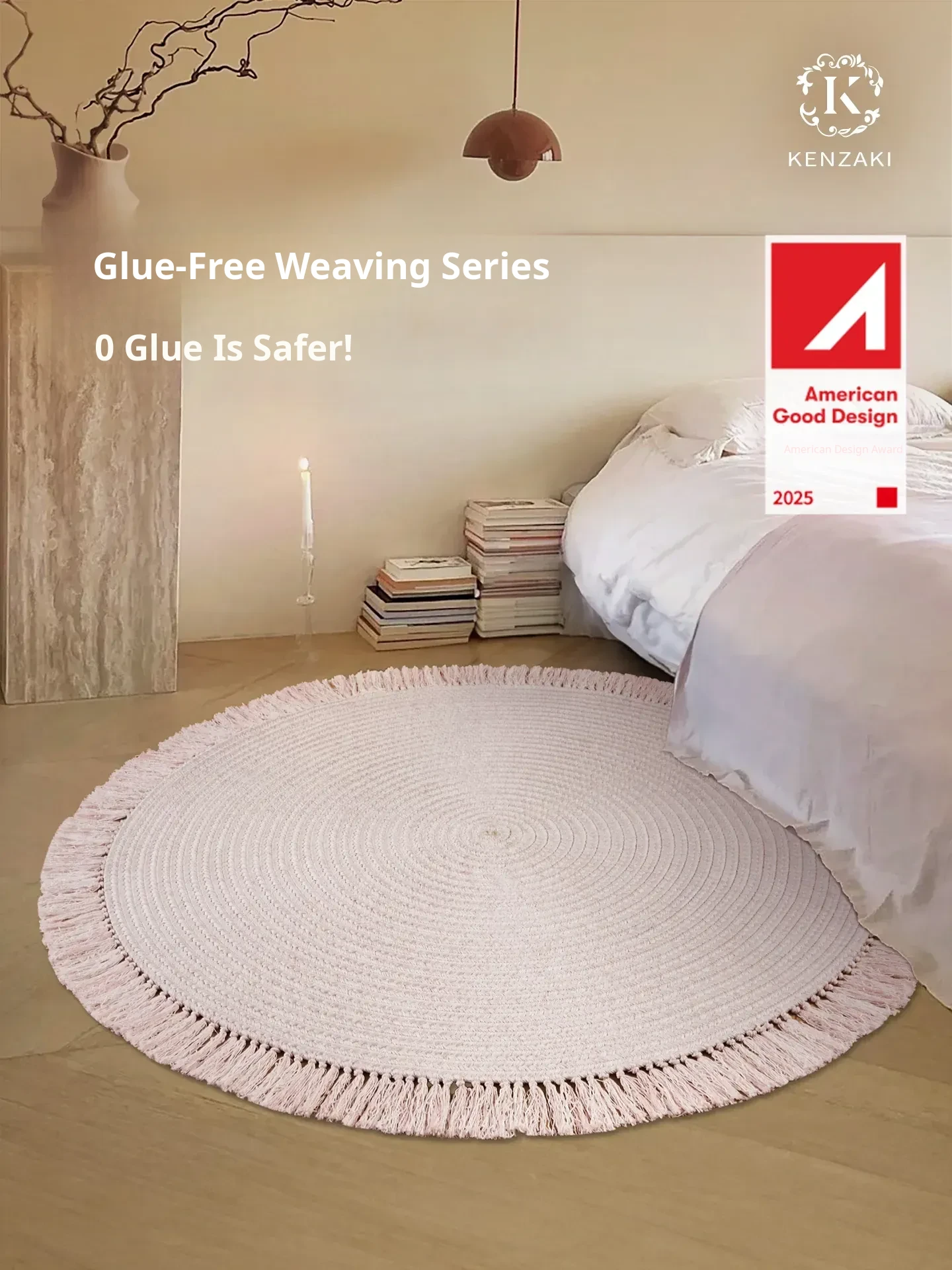 KENZAKI Natural Jute Woven Round Rug - Wabi-Sabi Style for Bedroom, Balcony, and Living Room - Non-Adhesive, Eco-Friendly Carpet for a Cozy Touch