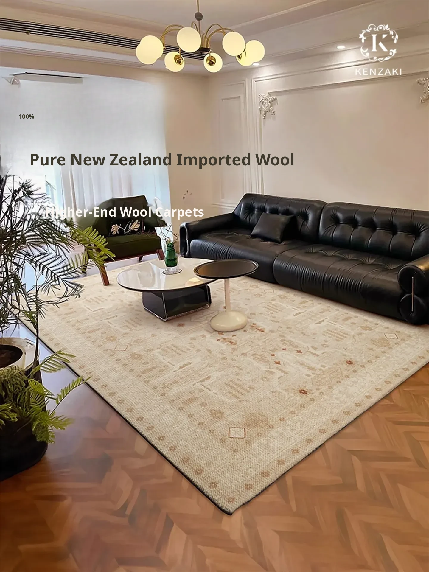 100% Pure New Zealand Wool Carpet - Luxurious French Vintage Area Rug for Living Room and Bedroom - Perfect for Sofa and Bedside Decor