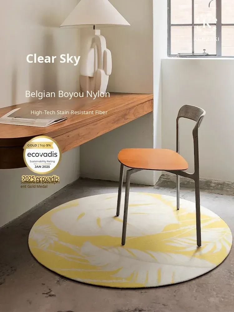 Luxury Yellow Round Carpet for Living Room and Bedroom - Stylish INS-Inspired Bedside Mat, Perfect for Makeup Chairs and Computer Desks, Ideal for Girls' Spaces