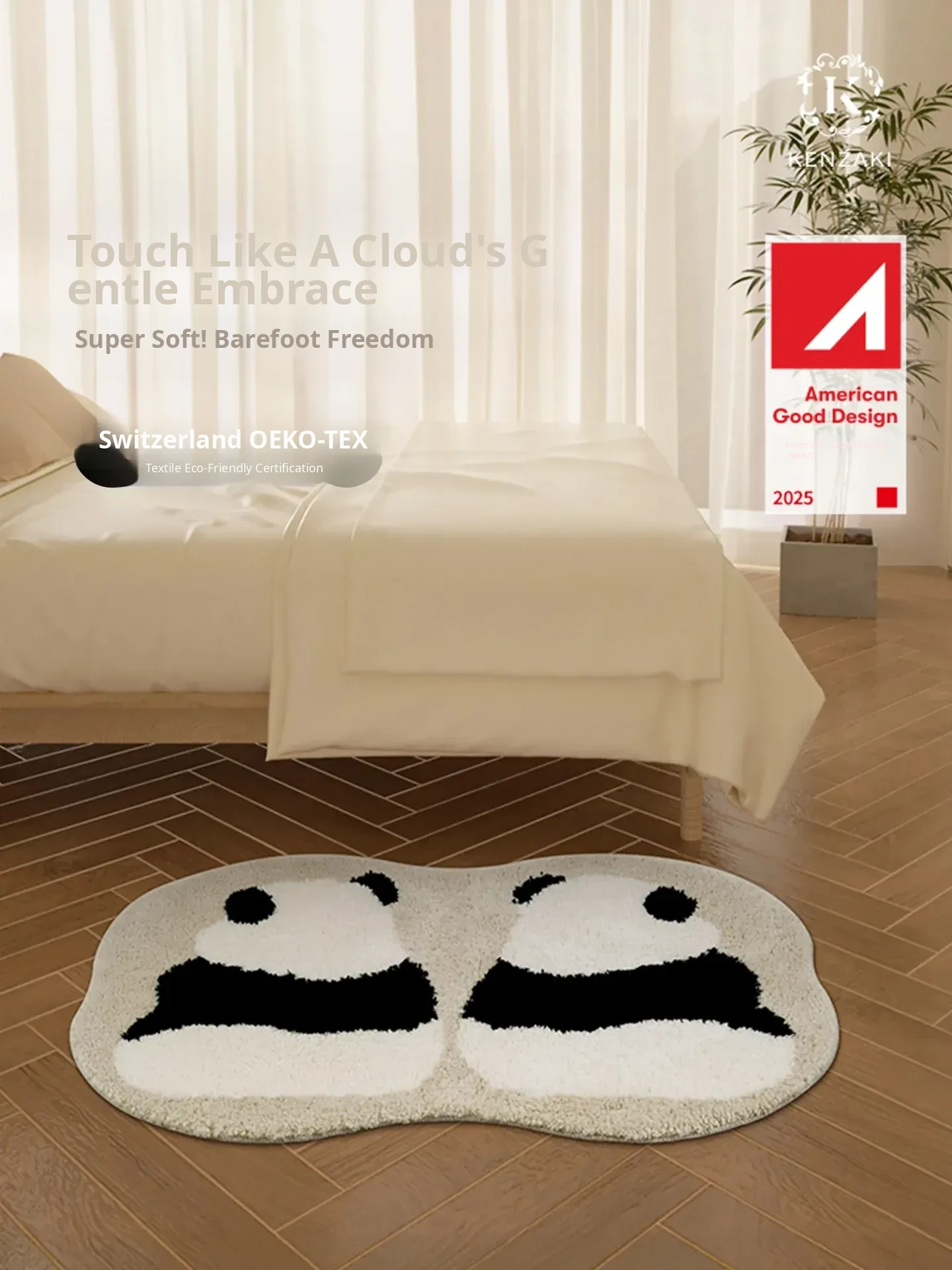 Adorable Panda Shaped Area Rug for Kids - Non-Slip Beige Bedroom Carpet, Perfect for Bedside or Study Desk, Machine Washable and Cute for Any Child's Room!