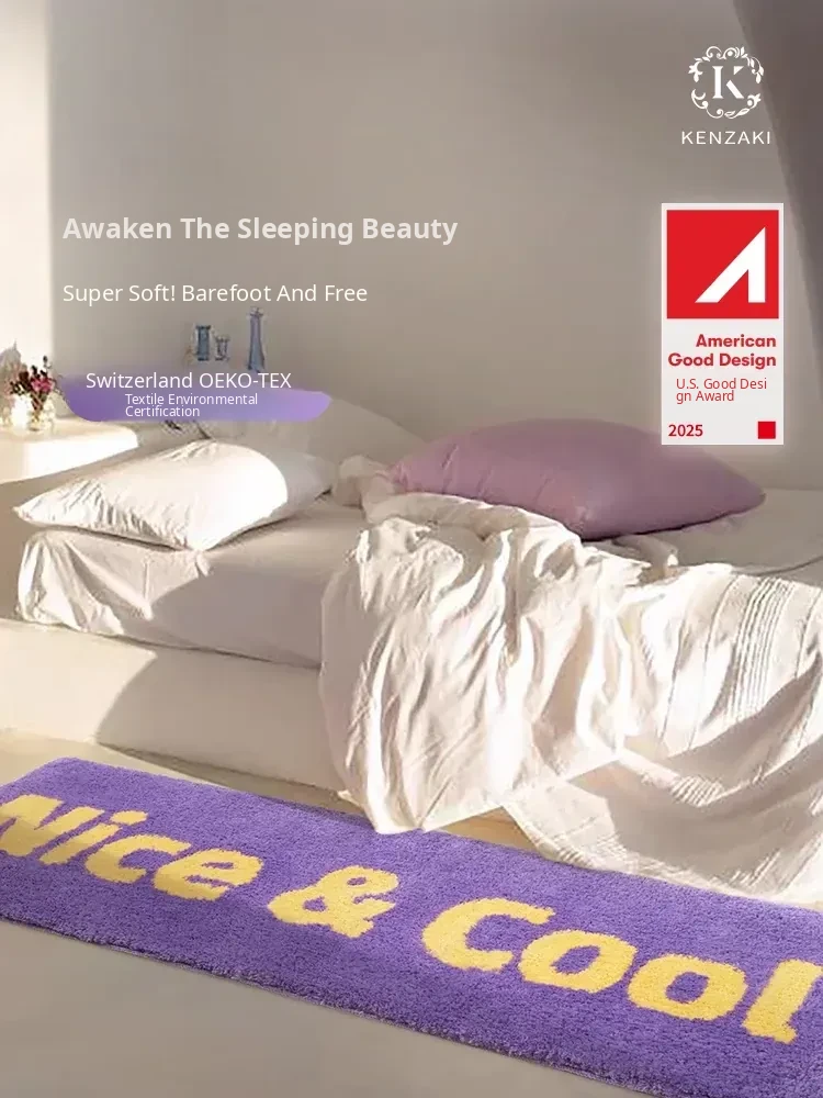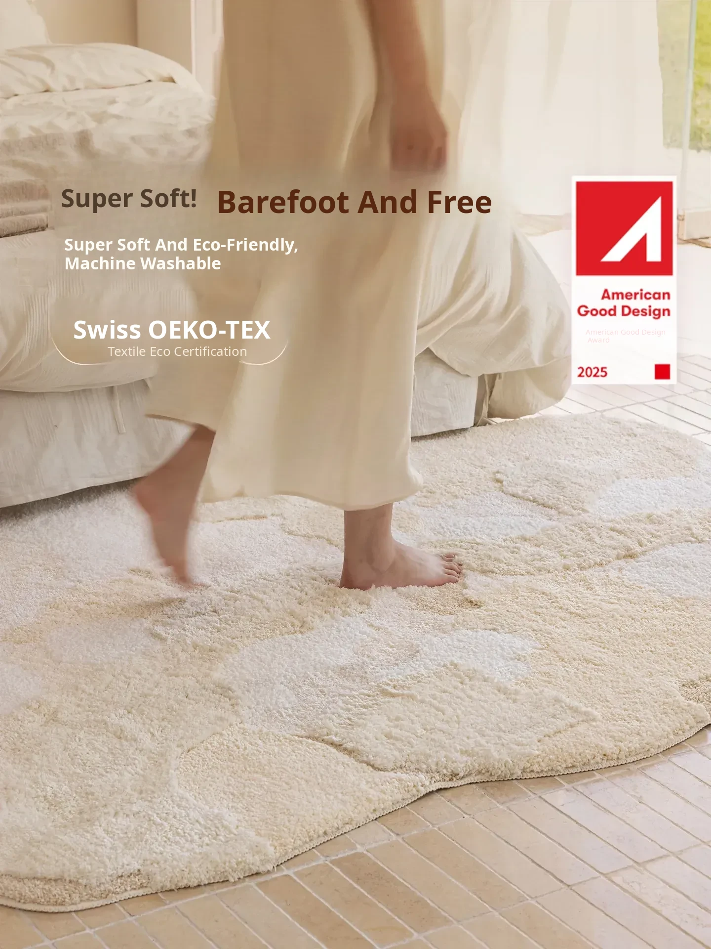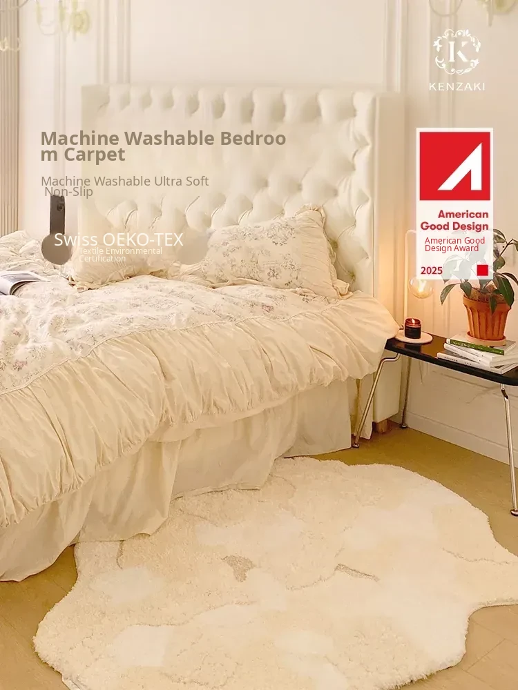 Luxury Cream-Colored Bedroom Carpet - Non-Slip Area Rug for Kids, Stylish Ins-Style Bedside Mat, Machine Washable, Perfect for Any Room