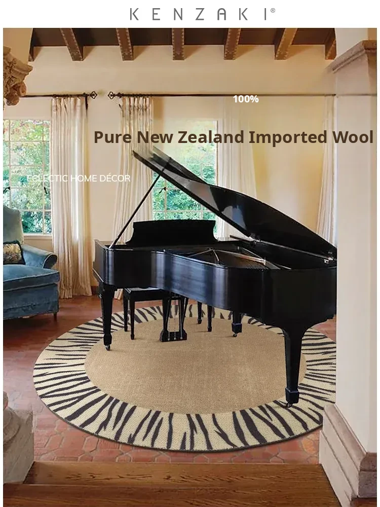 100% Pure New Zealand Wool Round Piano Carpet - Acoustic Soundproofing and Shock Absorption Rug for Piano Bench, Luxurious Living Room Décor