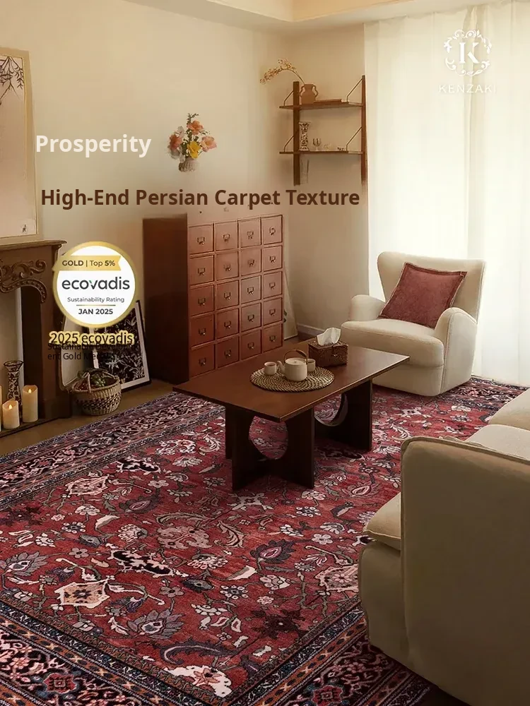 2025 New Vintage French Style Red Carpet for Living Room & Bedroom - Luxurious Soundproof Area Rug for Sofa & Villa Décor