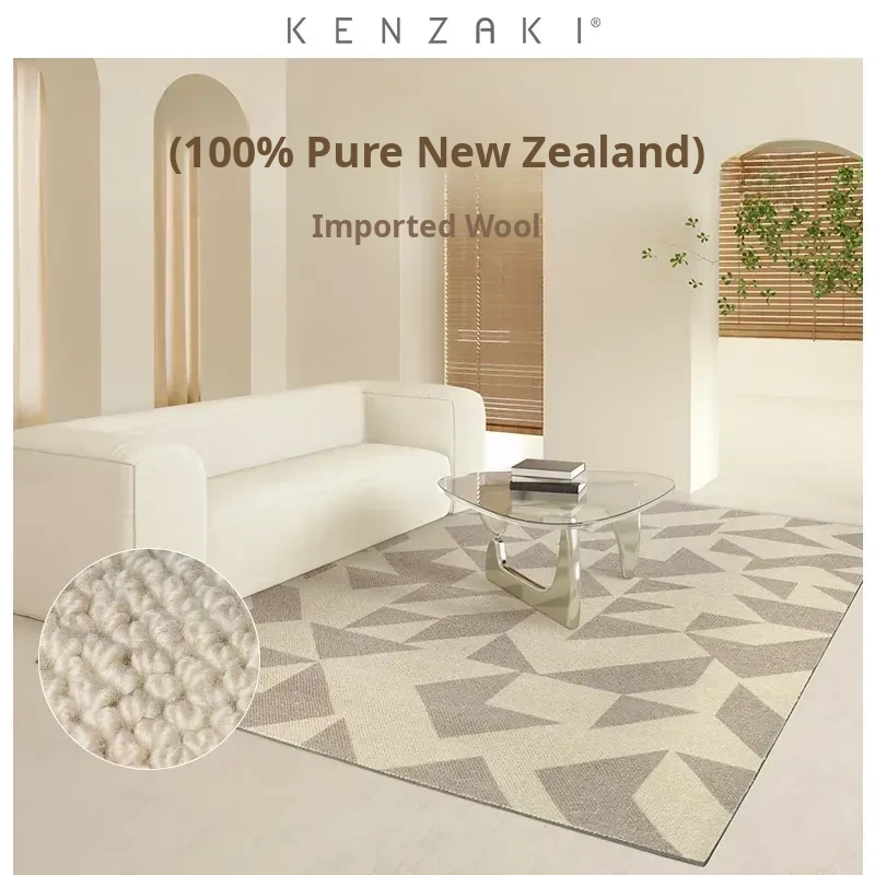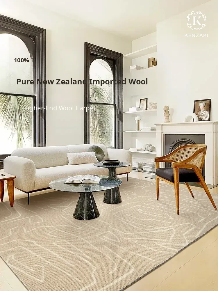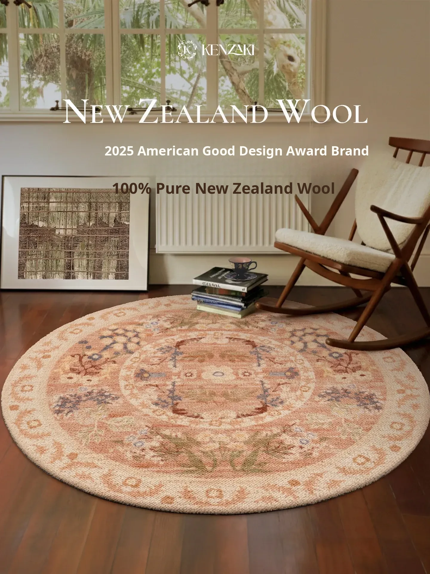 New KENZAKI 100% Pure New Zealand Wool Carpet - French Vintage Style for Bedroom, Living Room, and Sofa - Luxurious and Cozy Home Decor