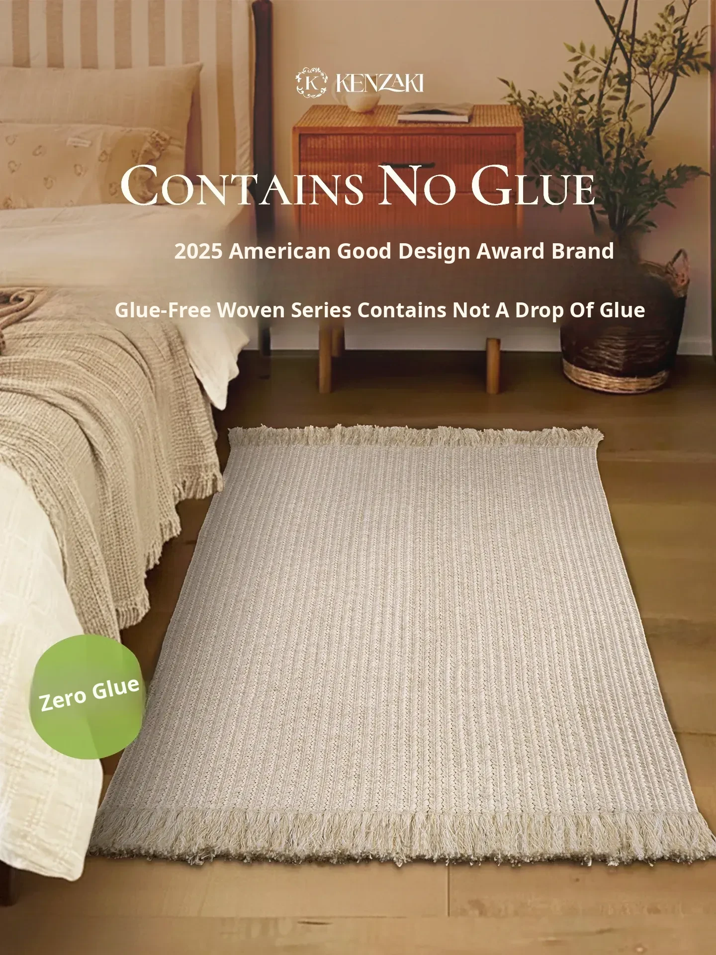 KENZAKI Natural Jute Woven Pure Hemp Wabi-Sabi Modern Minimalist Balcony Coffee Table Sofa Living Room Non-Toxic Area Rug