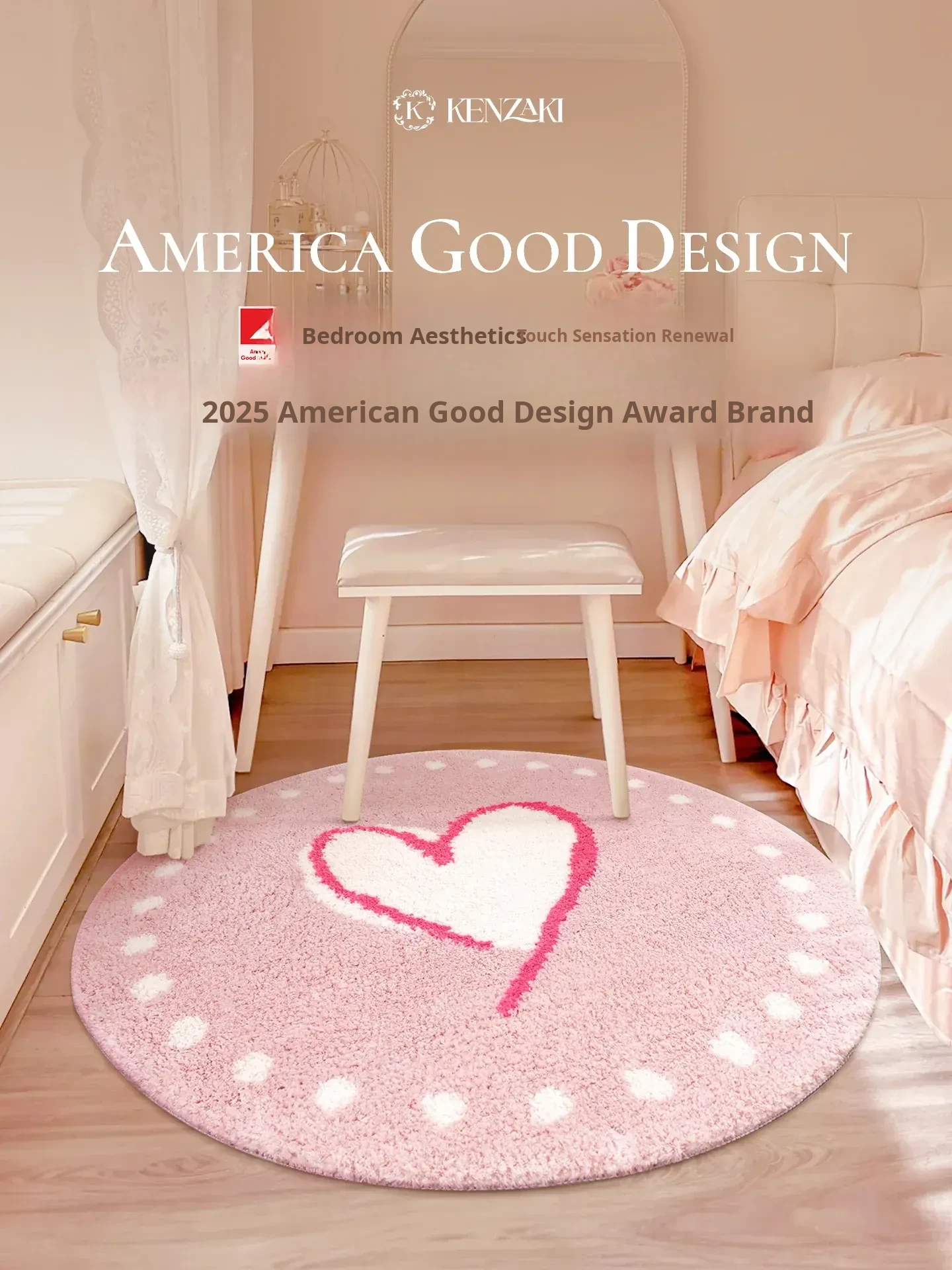 Pink Heart-Shaped Round Rug for Girls' Bedroom - Perfect for Bedside or Makeup Chair, Kid's Room Decor, Machine Washable, Princess Style