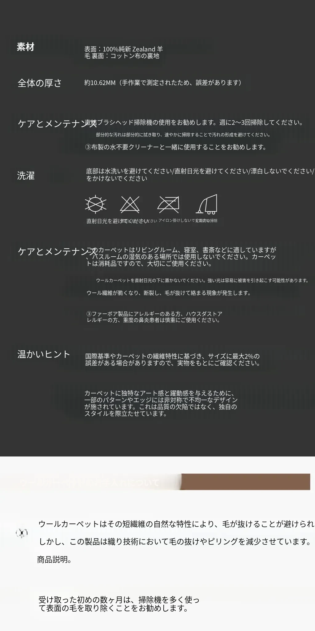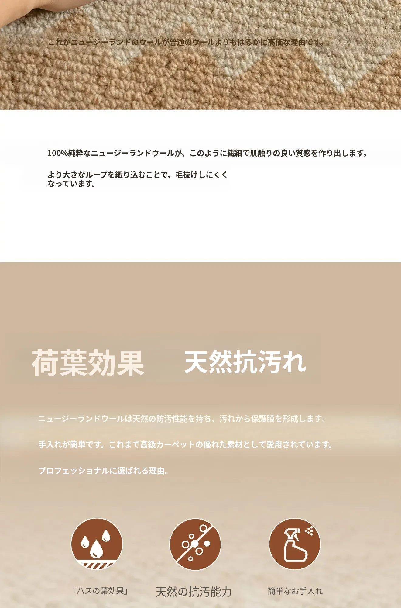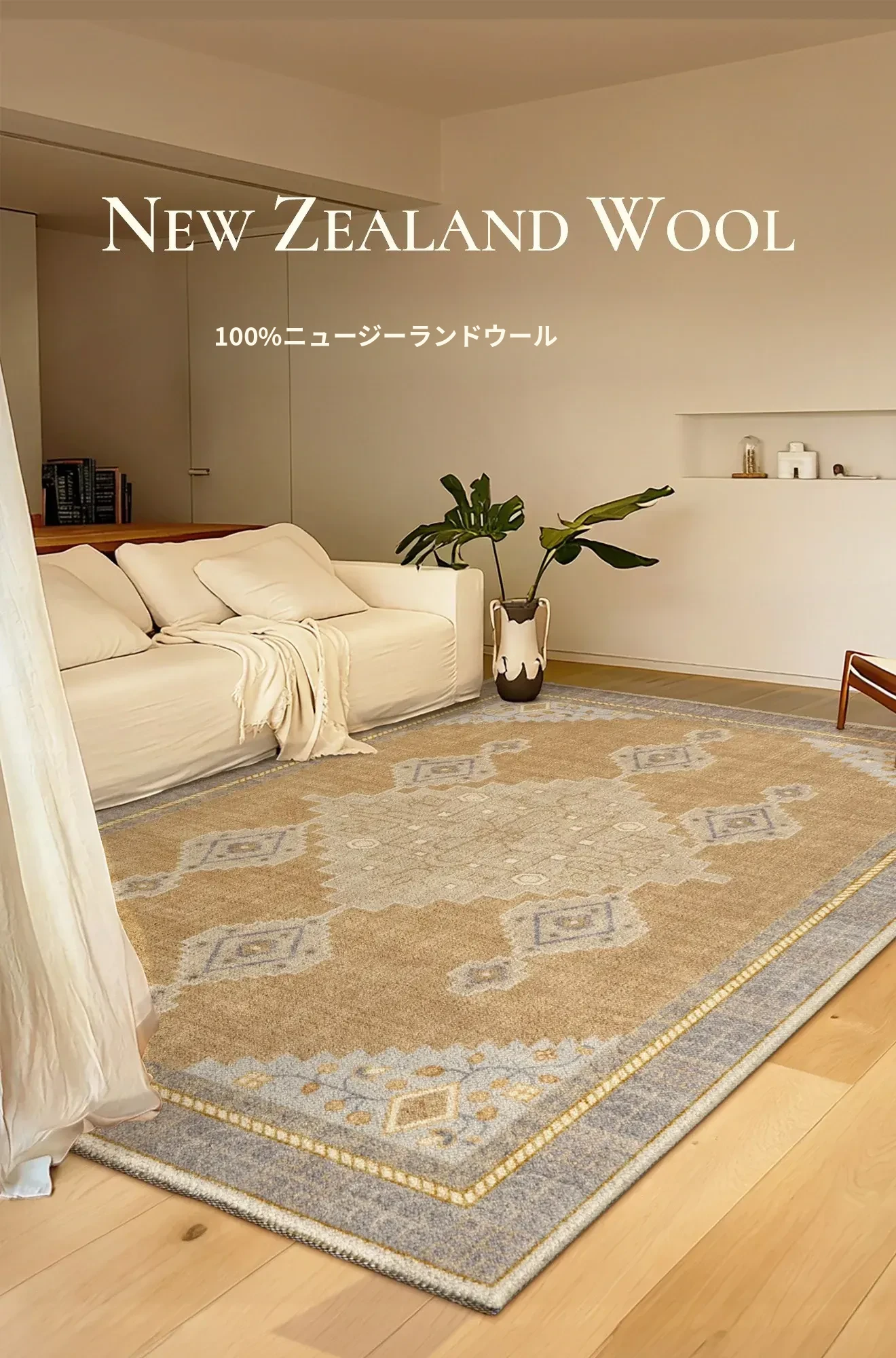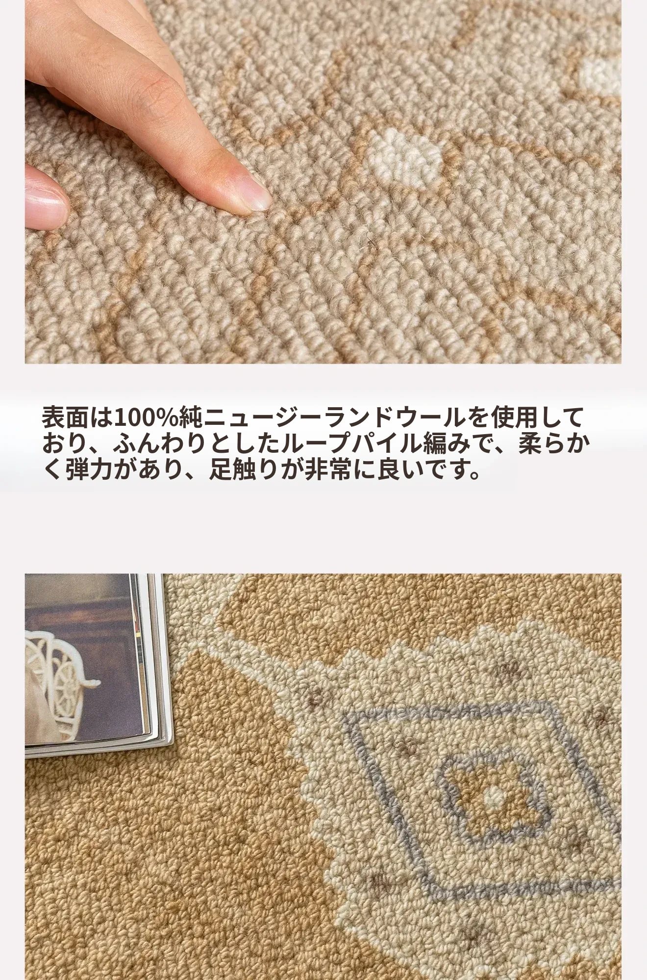 100%ニュージーランドウールのラグ - ラグジュアリーなブラウンカラー、フレンチヴィンテージスタイル、リビングやベッドサイドにぴったりな新作カーペット!お部屋を優雅に彩る高級感あふれるアイテムです。