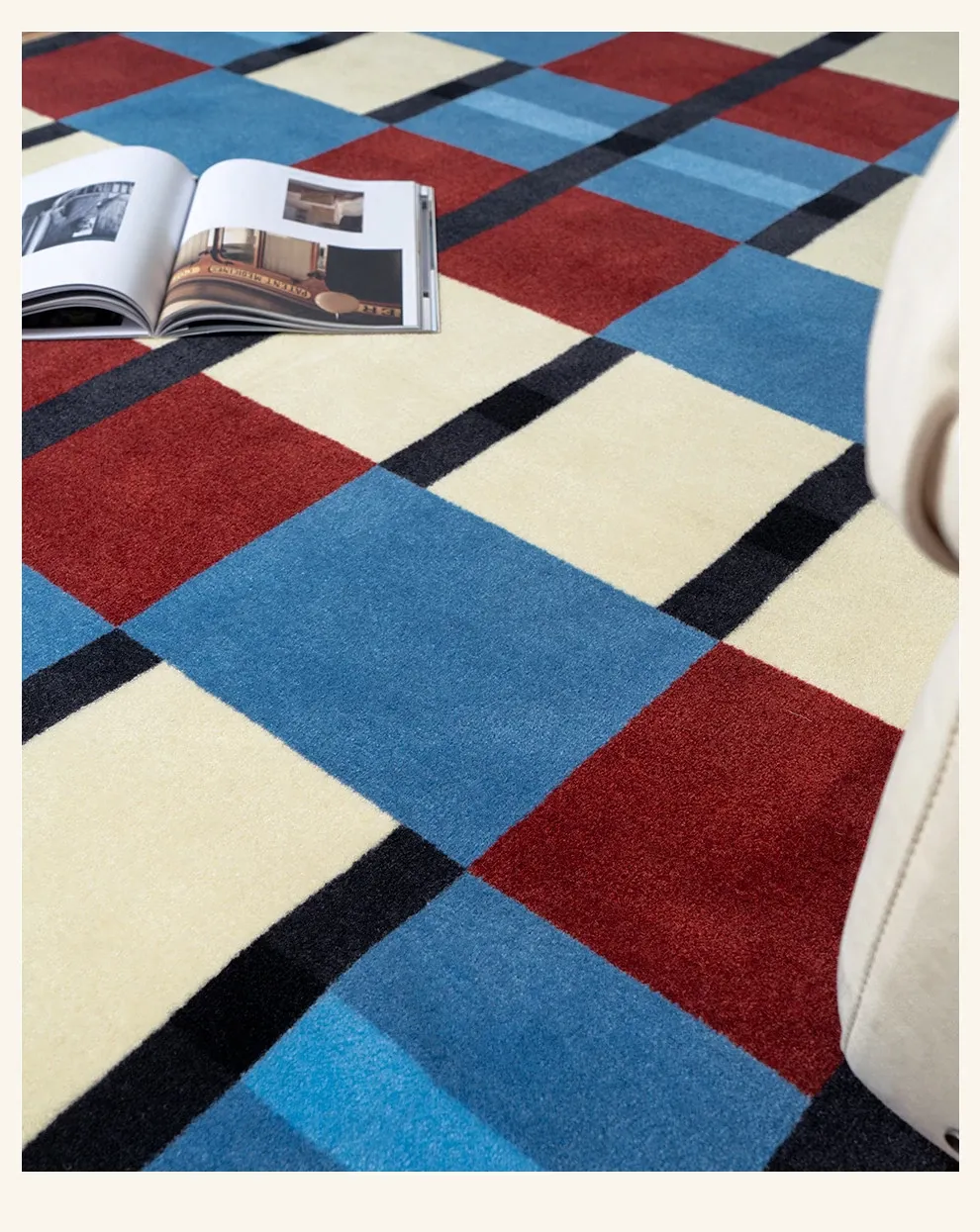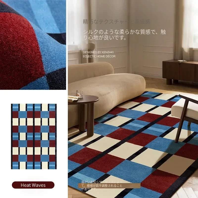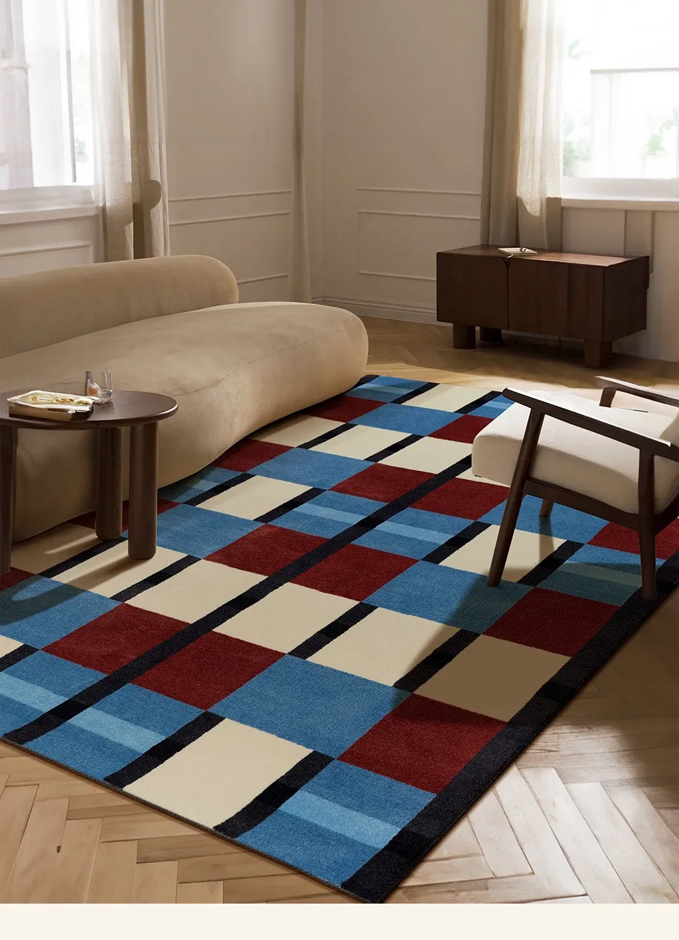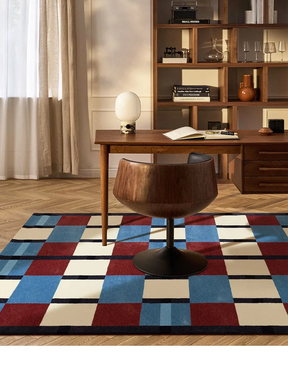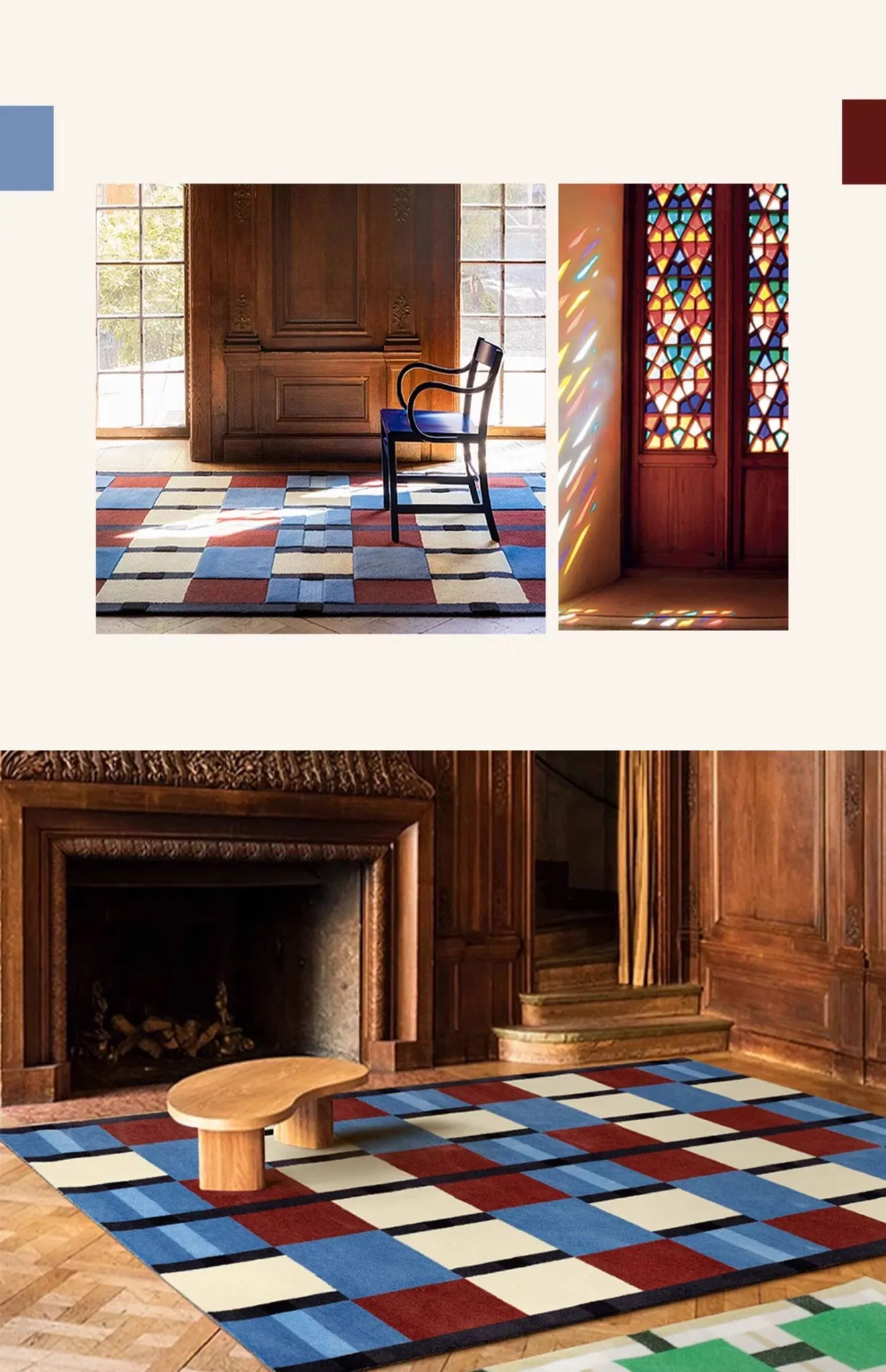 バウハウススタイルのラグ|書斎・オフィス・リビング・ベッドサイドに最適|高級感あふれるフレンチヴィンテージブルー|モダンでありながらクラシックな魅力を演出!