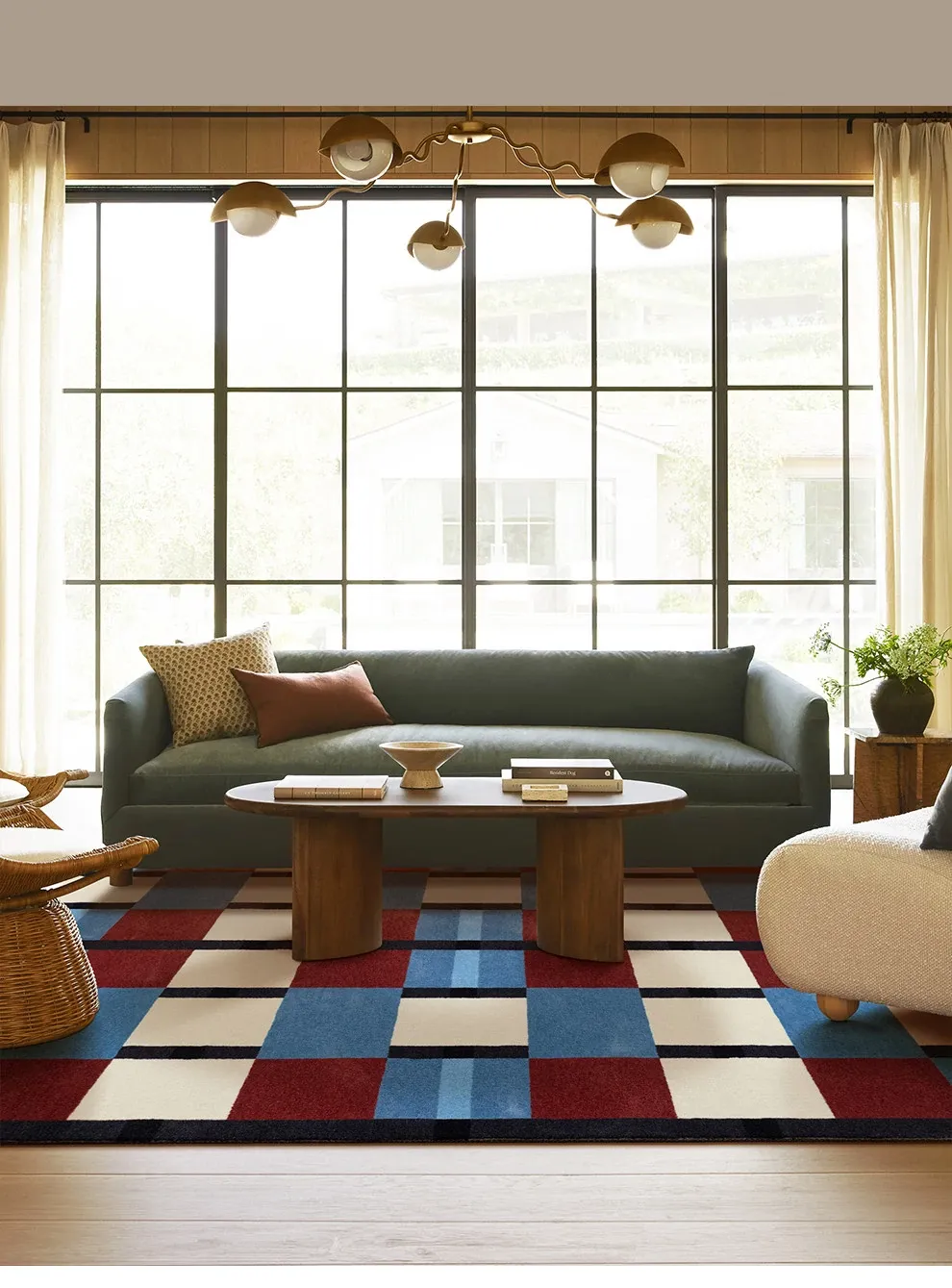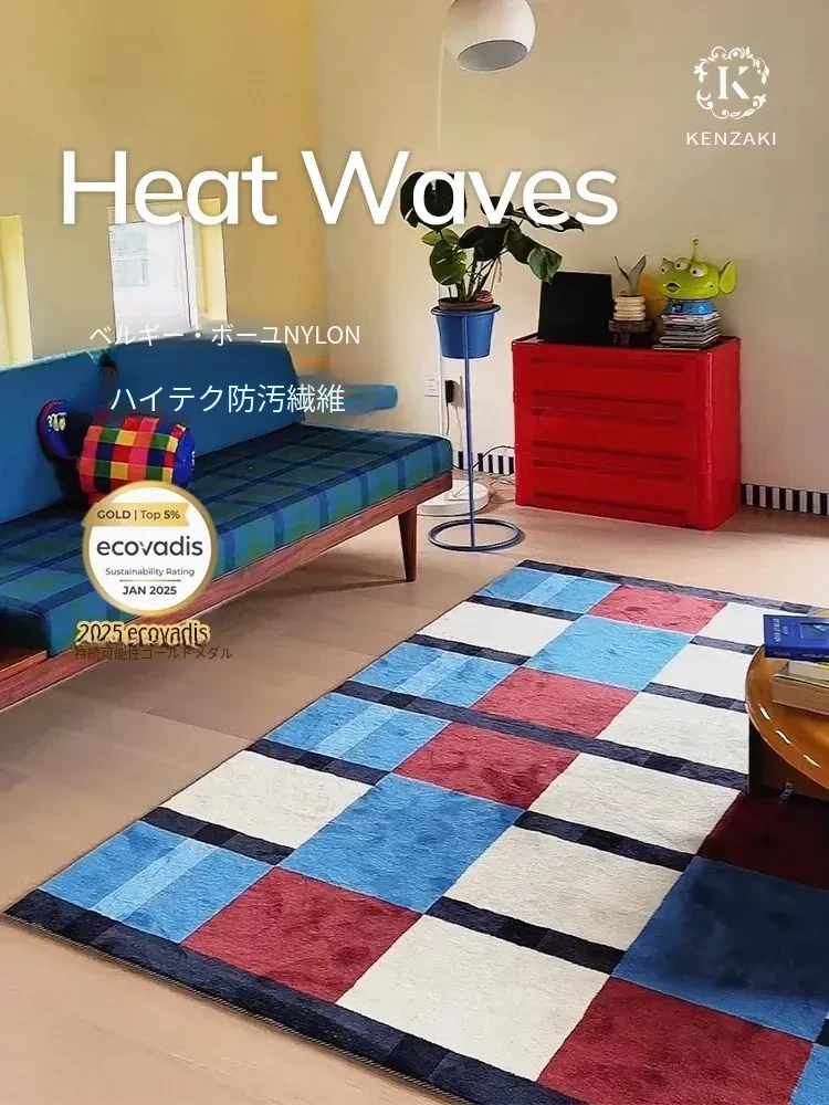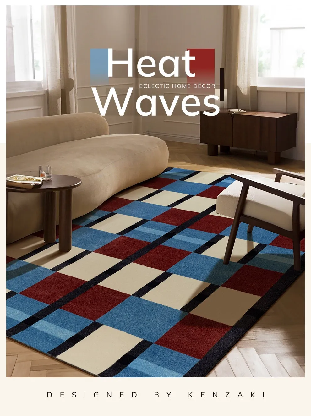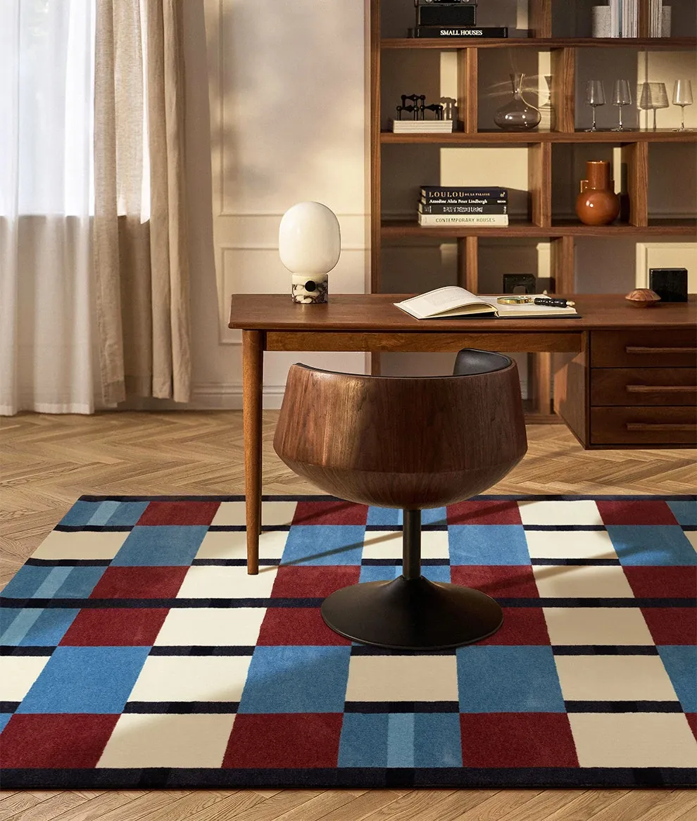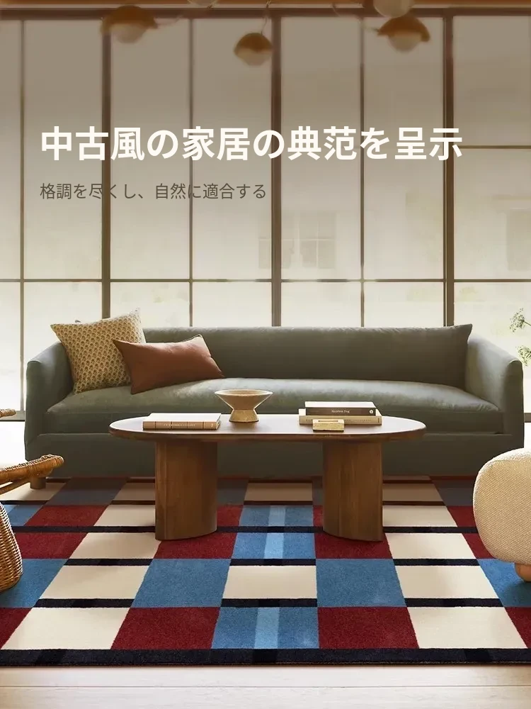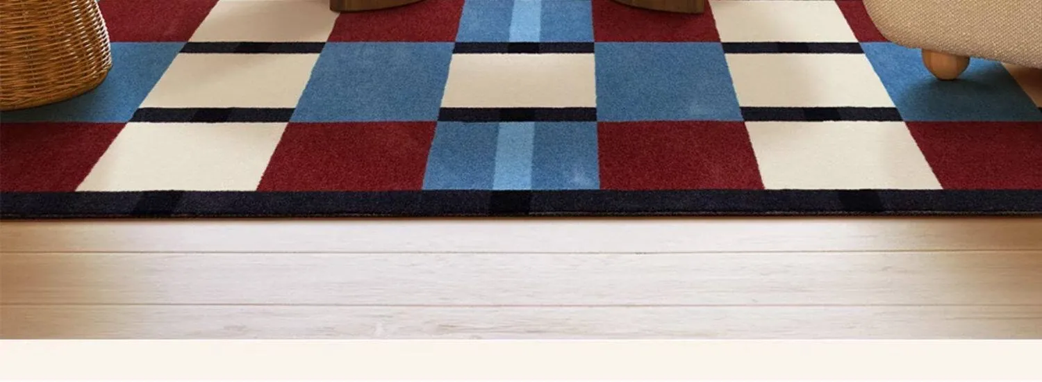 バウハウススタイルのラグ|書斎・オフィス・リビング・ベッドサイドに最適|高級感あふれるフレンチヴィンテージブルー|モダンでありながらクラシックな魅力を演出!